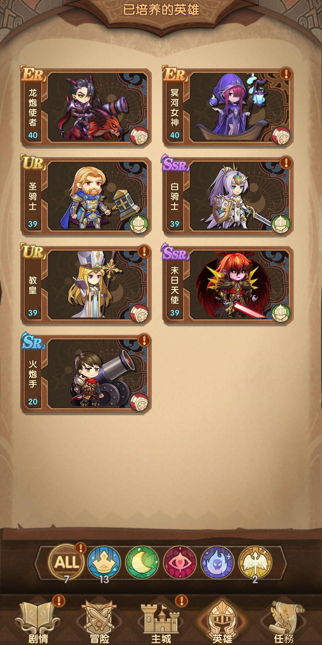 而人族其他英雄,很明显就是为了辅助主角,凸显主角🐮🍺的更有力证明,低级的r卡,n卡就有加攻减防的被动和主动技能,高级的ssr更是个个都能当优秀的辅助,比如教皇的禁技能,末日天使的降攻被动技和减血上限的伤害主动技,天使长的治疗,复活,加攻击,圣骑士的治疗,驱散,和加护盾加抗性,圣枪骑士的防御阵型,想想谢谢buff加到主角身上,主角会有多么🐮🍺。