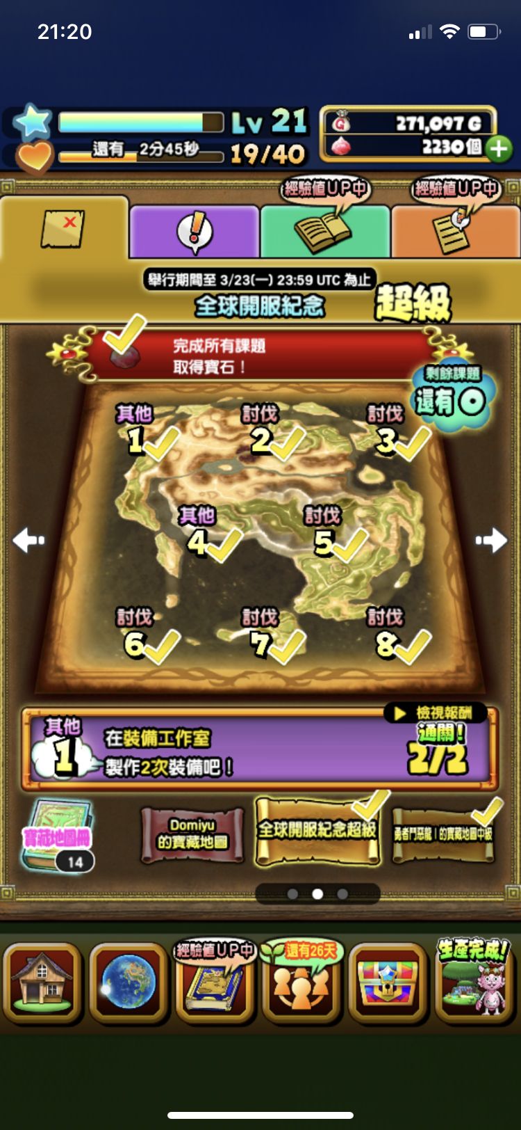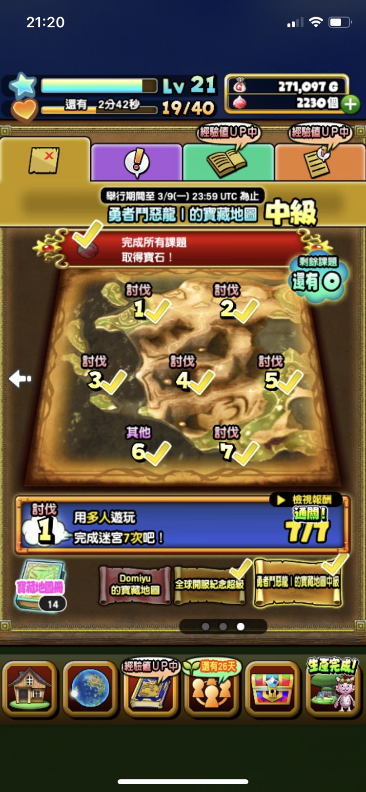 公告里有写两张地图最高级分别是“全球开服纪念传说级”和“勇者斗恶龙1高级”,为什么我完成超级和高级地图后没有接到下一张呢,只是保持完成状态。只有我是这样的嘛?求助!😭