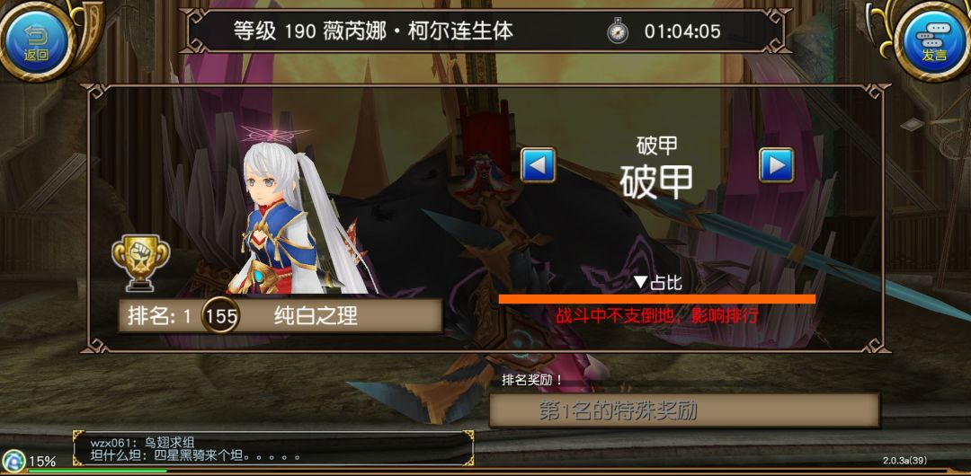 国服 第一支首杀队伍(不破位的前提下,破位了那我就不能保证boss会怎么样了,可能会癫疯),实际上就是我们人手不够,不然四星皇女两个队半小时之内轻松干掉,(boss被控可能会格挡)但首先要会进哦(坏笑)。