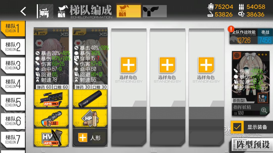 我的打捞队配置为三改a/r15和沙鹰,除a/r15为115级其他配置为满配。妖精为满级三星指挥。