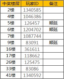 排除重复回帖出现的重复中奖后,5楼中奖楼层实际获奖玩家为11楼玩家,6楼中奖楼层实际获奖玩家为14楼玩家,9楼中奖楼层实际获奖玩家为18楼玩家。(既以实际获奖玩家ID为准)