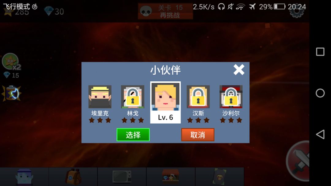 打15关,第一次打的时候是有小伙伴,然后失败了,第二次开始的时候小伙伴消失了(⊙﹏⊙),而且以后再次进入小伙伴也没有,上图