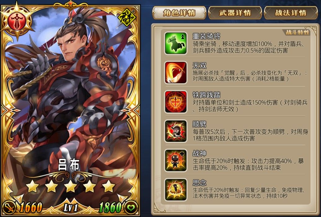 活动内容:《白门楼包》活动卡包重新开放。可获得强力5星角色:吕布(声望卡)、高顺、陈宫和4星角色:郝萌。吕布卡面以及技能