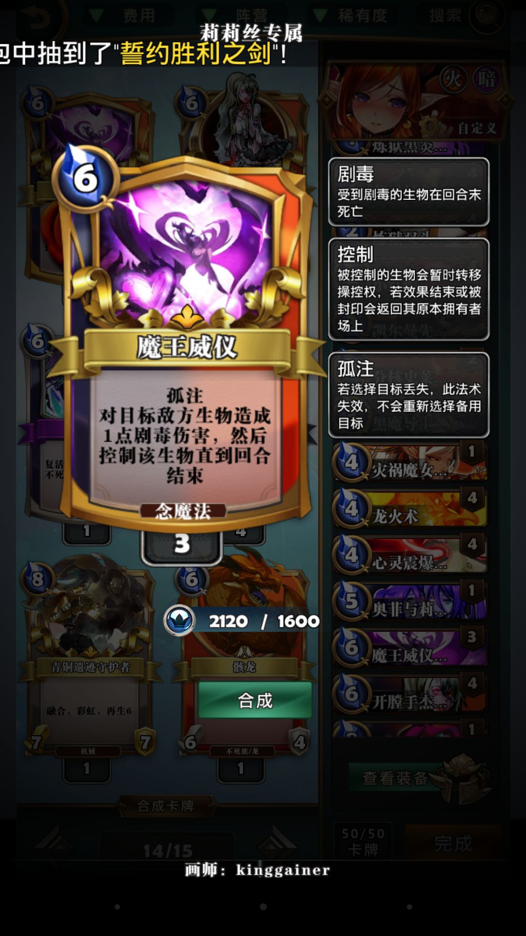 魔王威仪,控制类神卡。你的卡牌不错,可惜下一秒就是我的了。ntr也是游戏的一部分(滑稽)