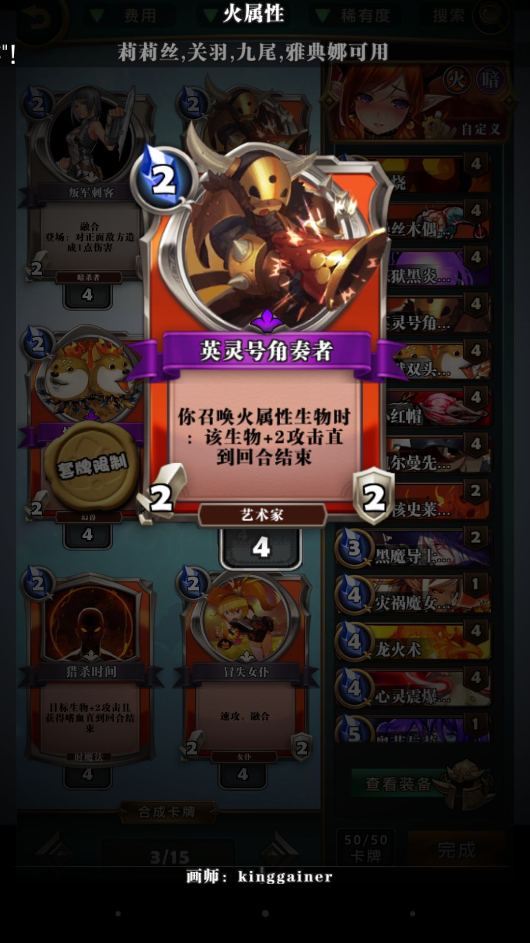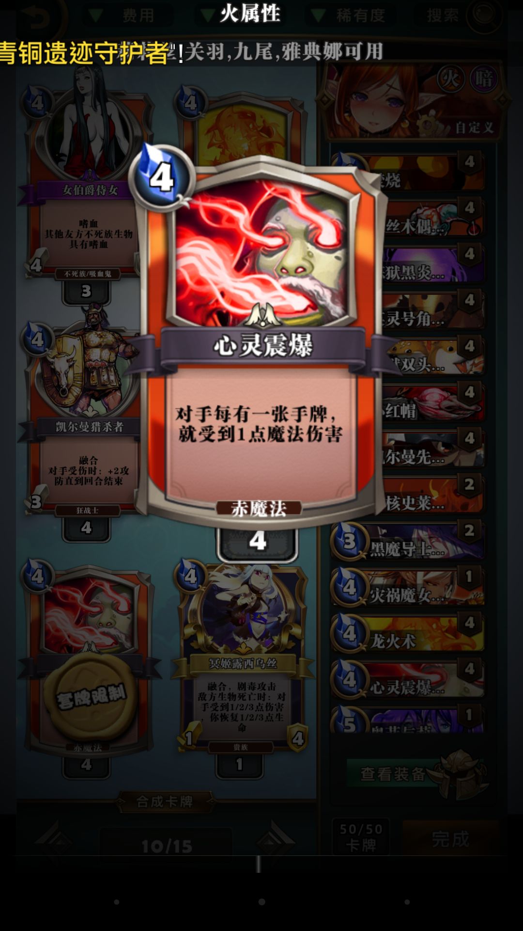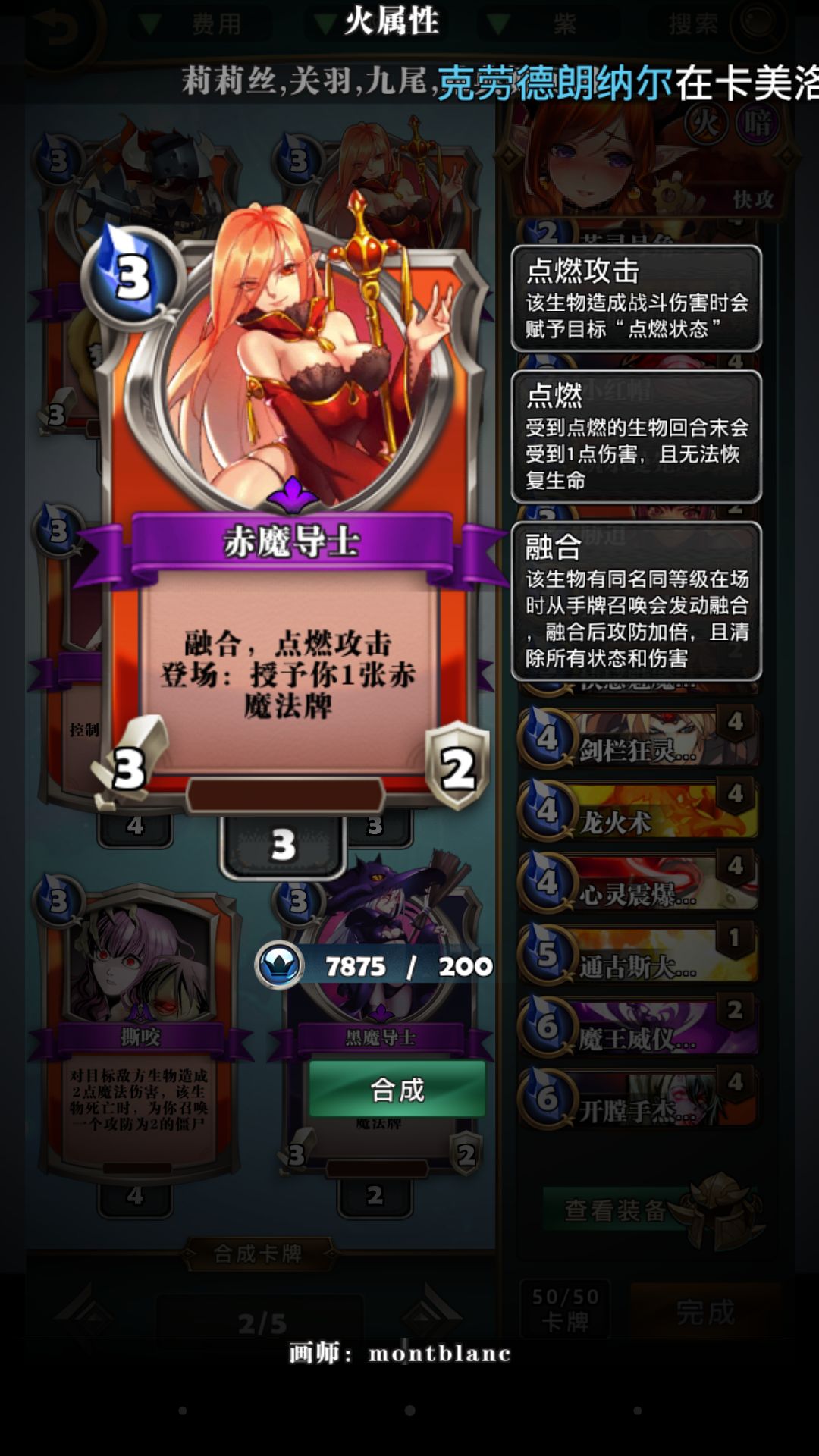 这四张紫卡都具有非常不错的效果,且造价低,性价比高。魅魔的异能较容易触发,且可以配合炼狱黑炎;赤魔导、黑魔导具有优秀的过牌效果,但带多了会影响快攻节奏;胁迫是一张优秀的控制卡,不过很考验牌手的意识。最后分享一下我的卡组和配装,卡组方面可以灵活搭配,看个人喜好与习惯。这里提供的卡组仅供参考,希望对大家有所帮助。