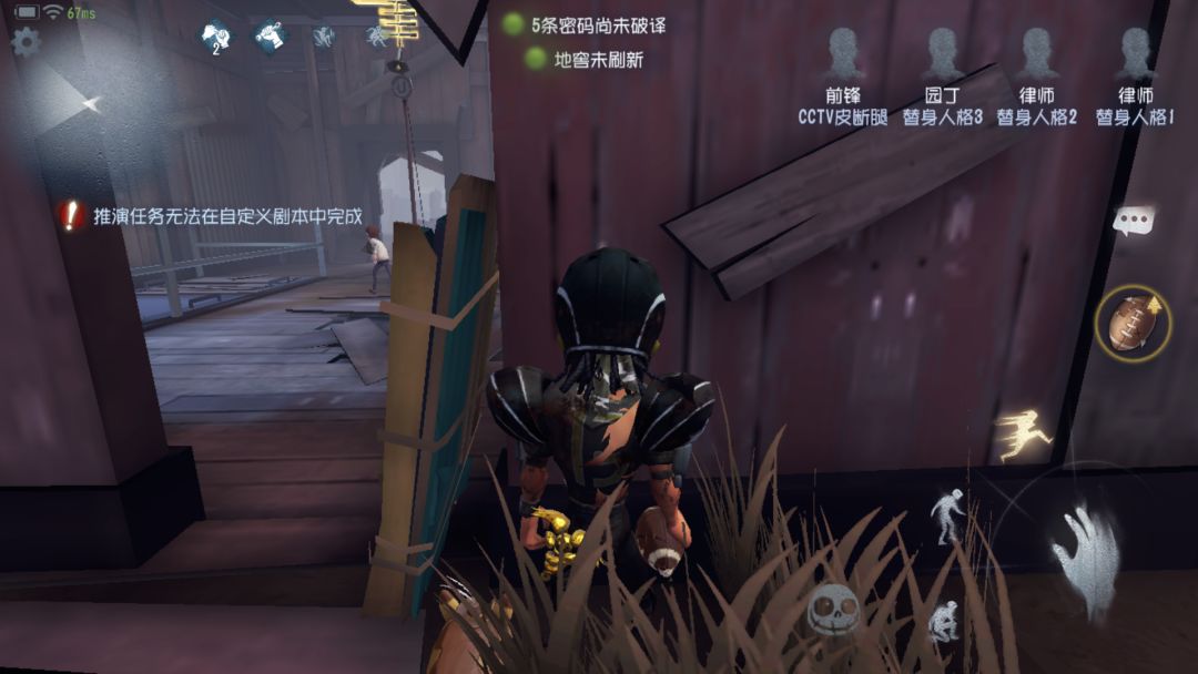 那么第三张图里的板子又为什么被称作危险板呢?这种板不同于前面讲过的那些这种板的位置放置在另一边,放置在另一边就使得求生者不能躲在板子后面静待屠夫的到来,而且被屠夫追的时候直接放下这种板