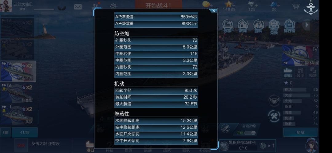 副炮基础射程:5.5km。