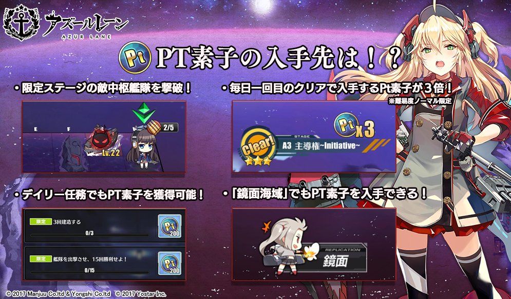 可通过完成每日限定任务或者通关活动关卡和镜面海域获得「Pt素子」