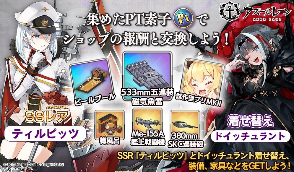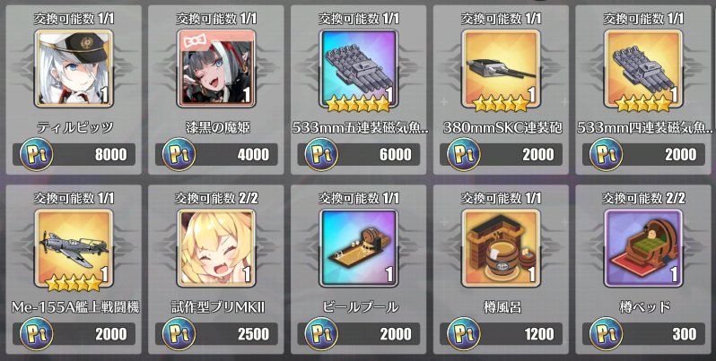「Pt素子」可在活动兑换处兑换SSR「ティルピッツ」(提尔比茨)。