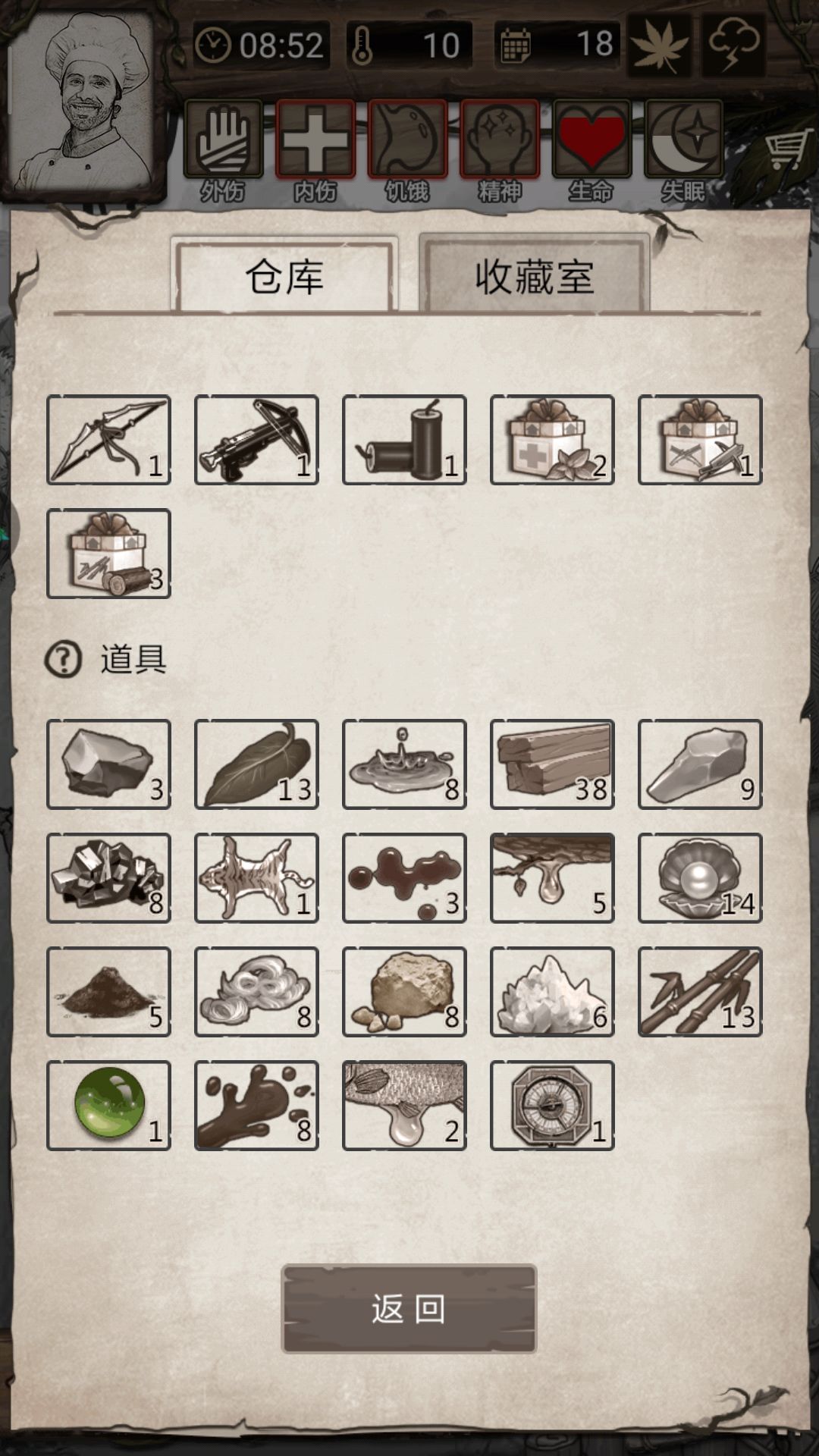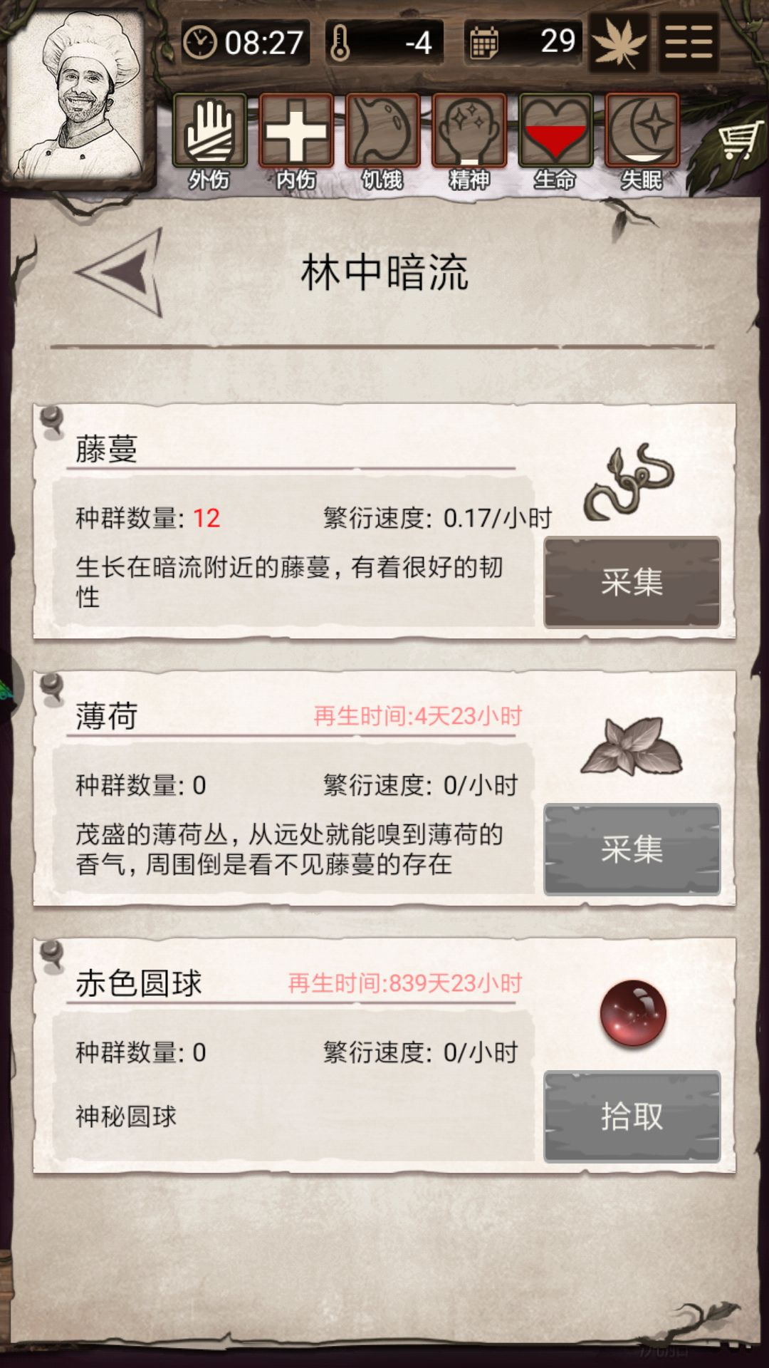溶洞☞拿到存档绳子☞补给☞去涯洞打完全部有木头石片薄荷。