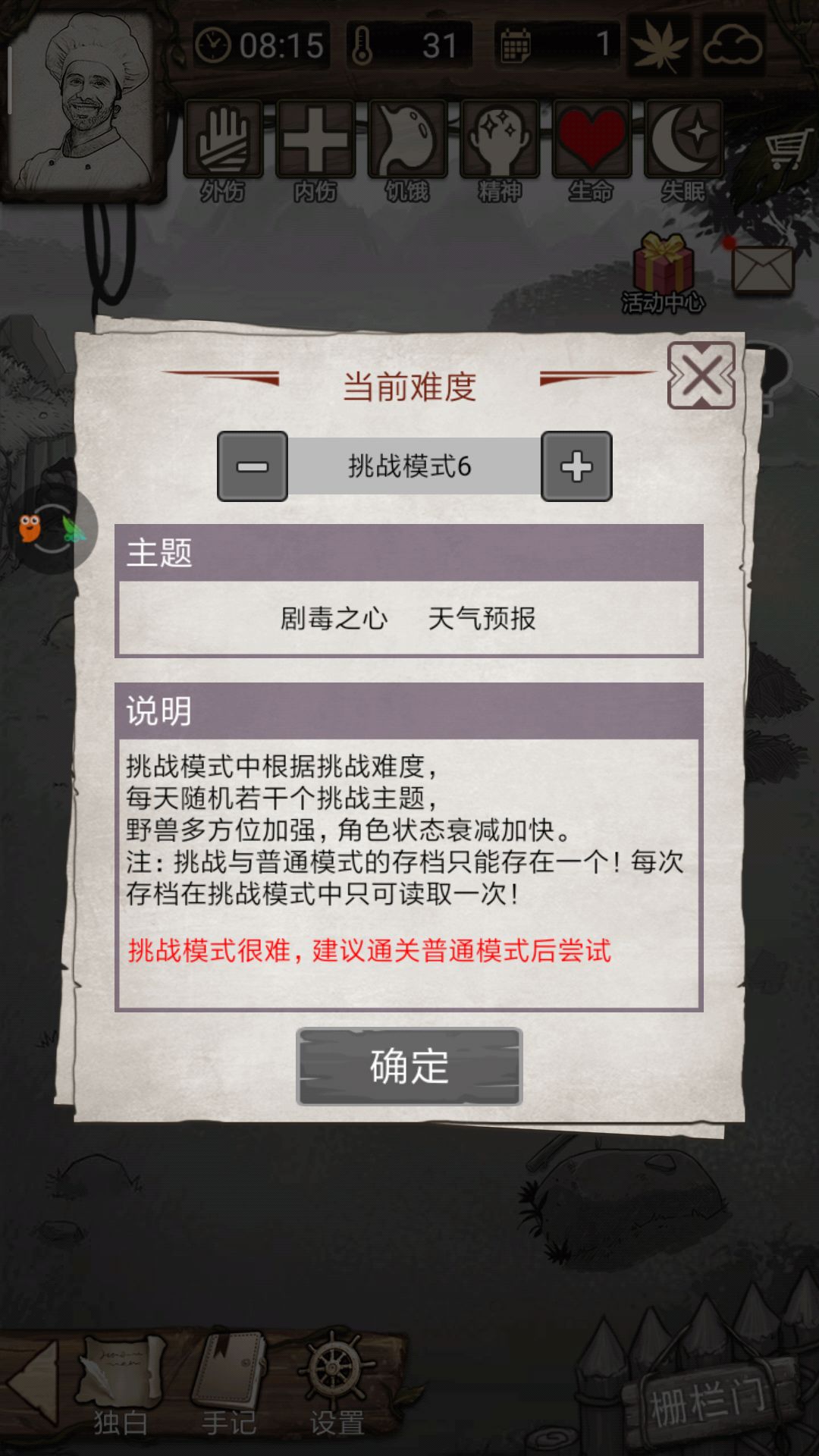 环境家(物资快,坏处。。熊和猪也恢复快了需要打打打。)/药剂师(草药续命)