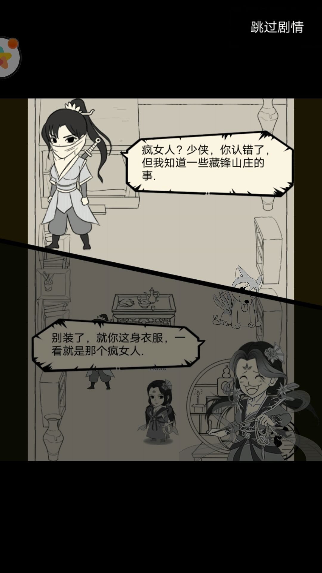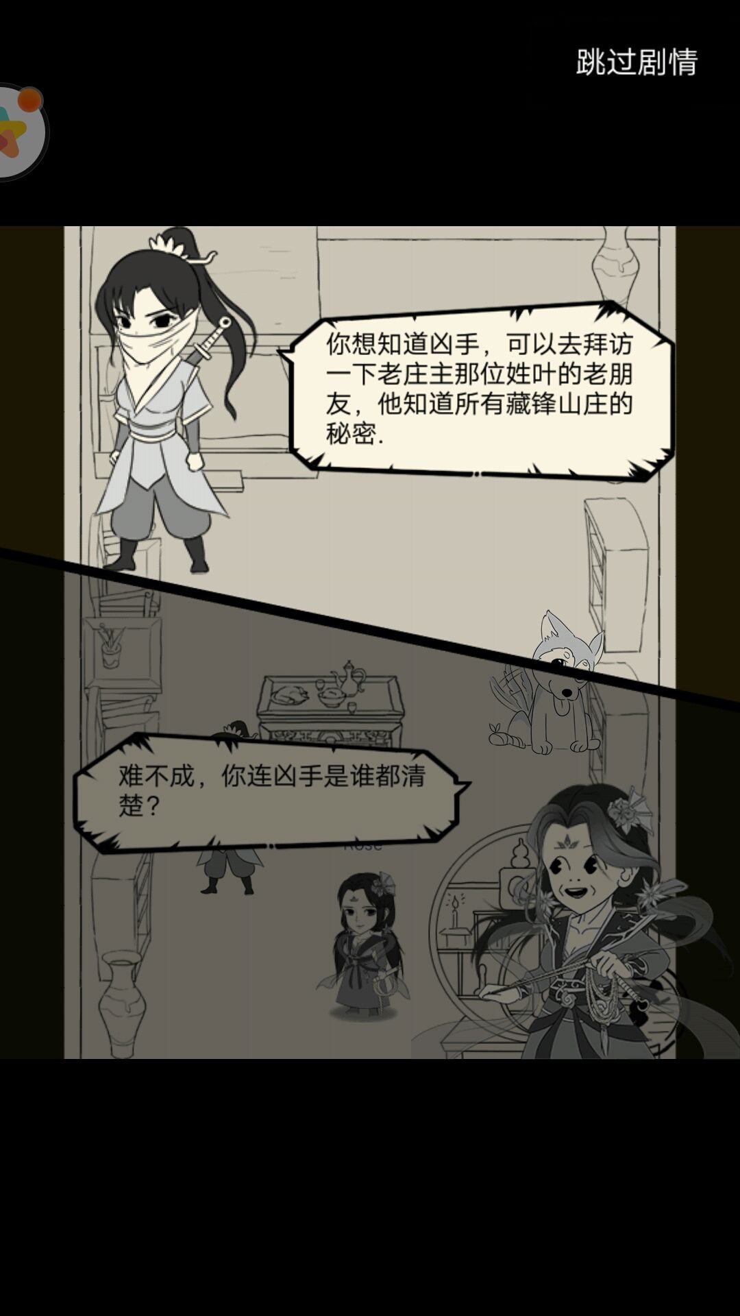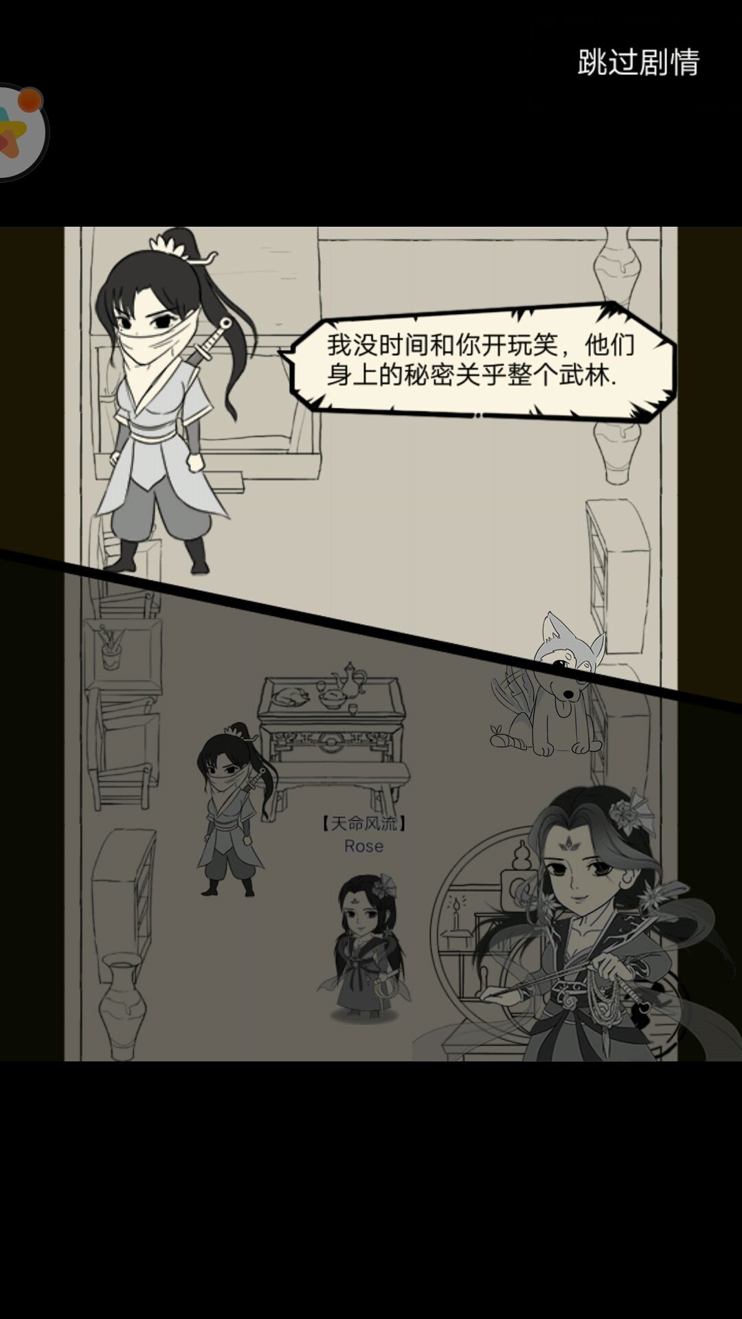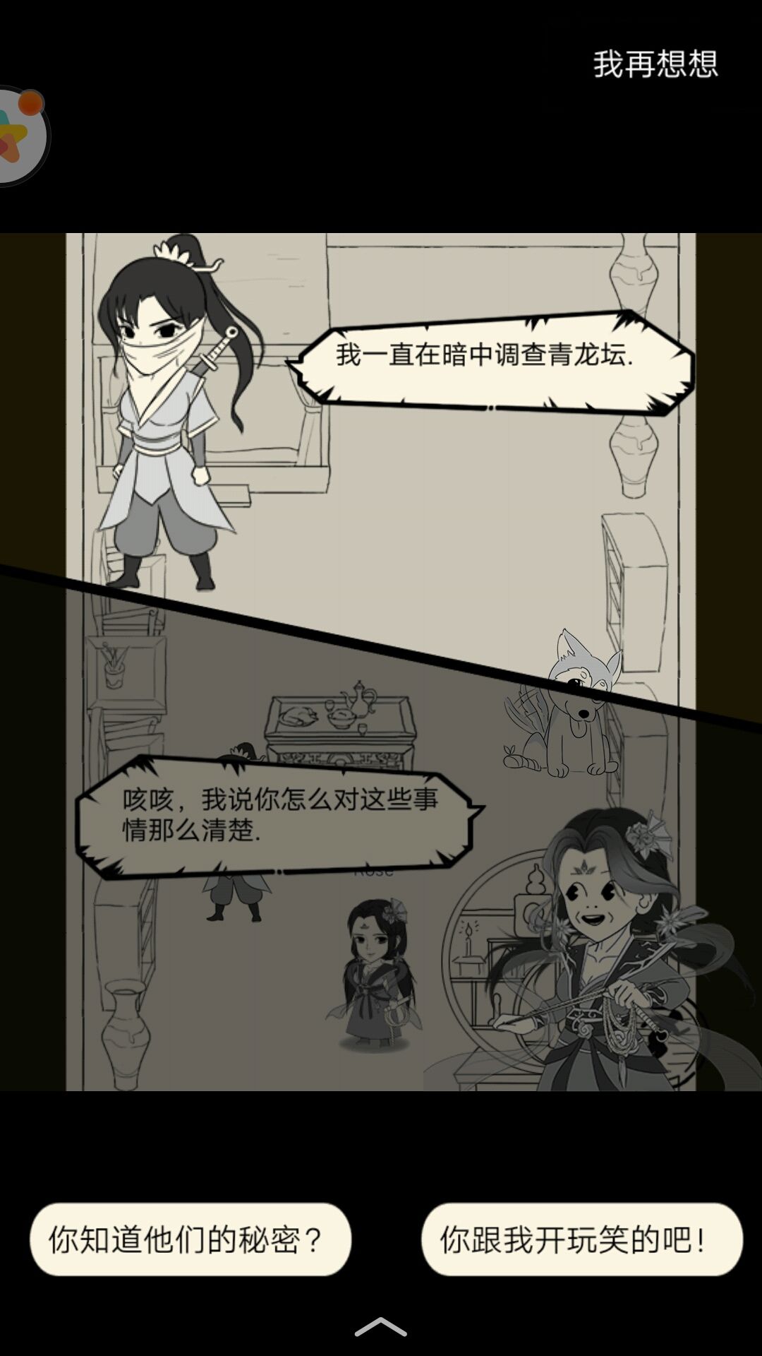 右:蒙面少女说青龙坛关乎整个武林的秘密。