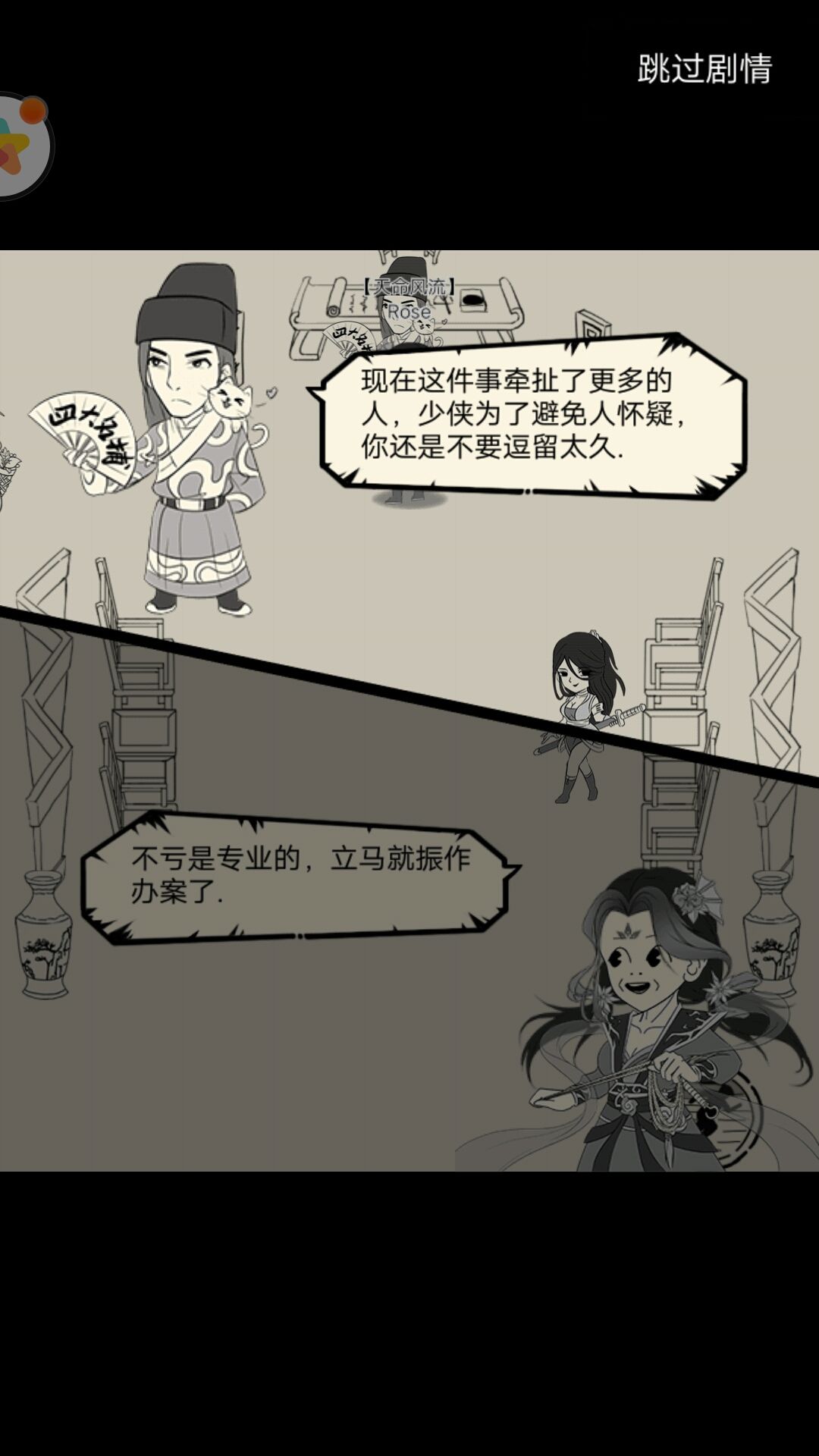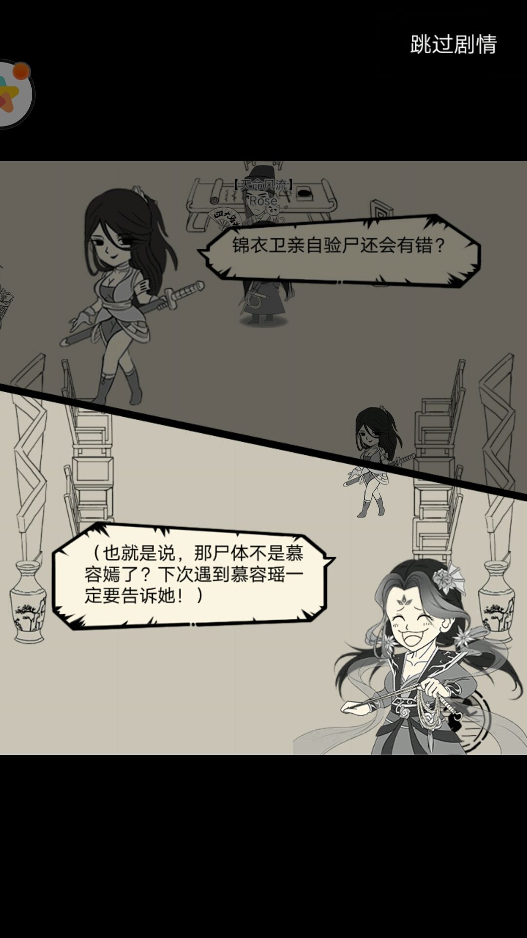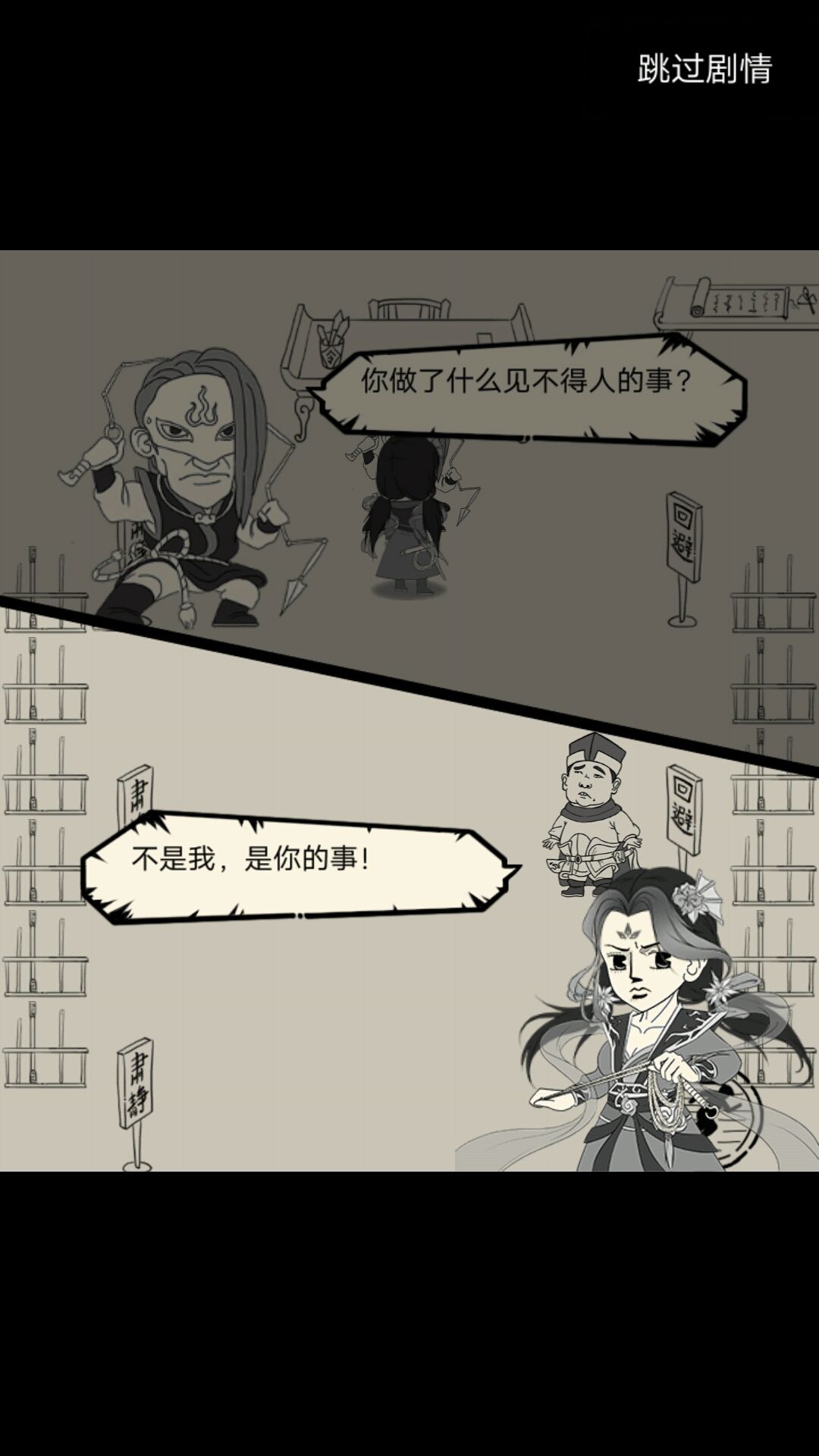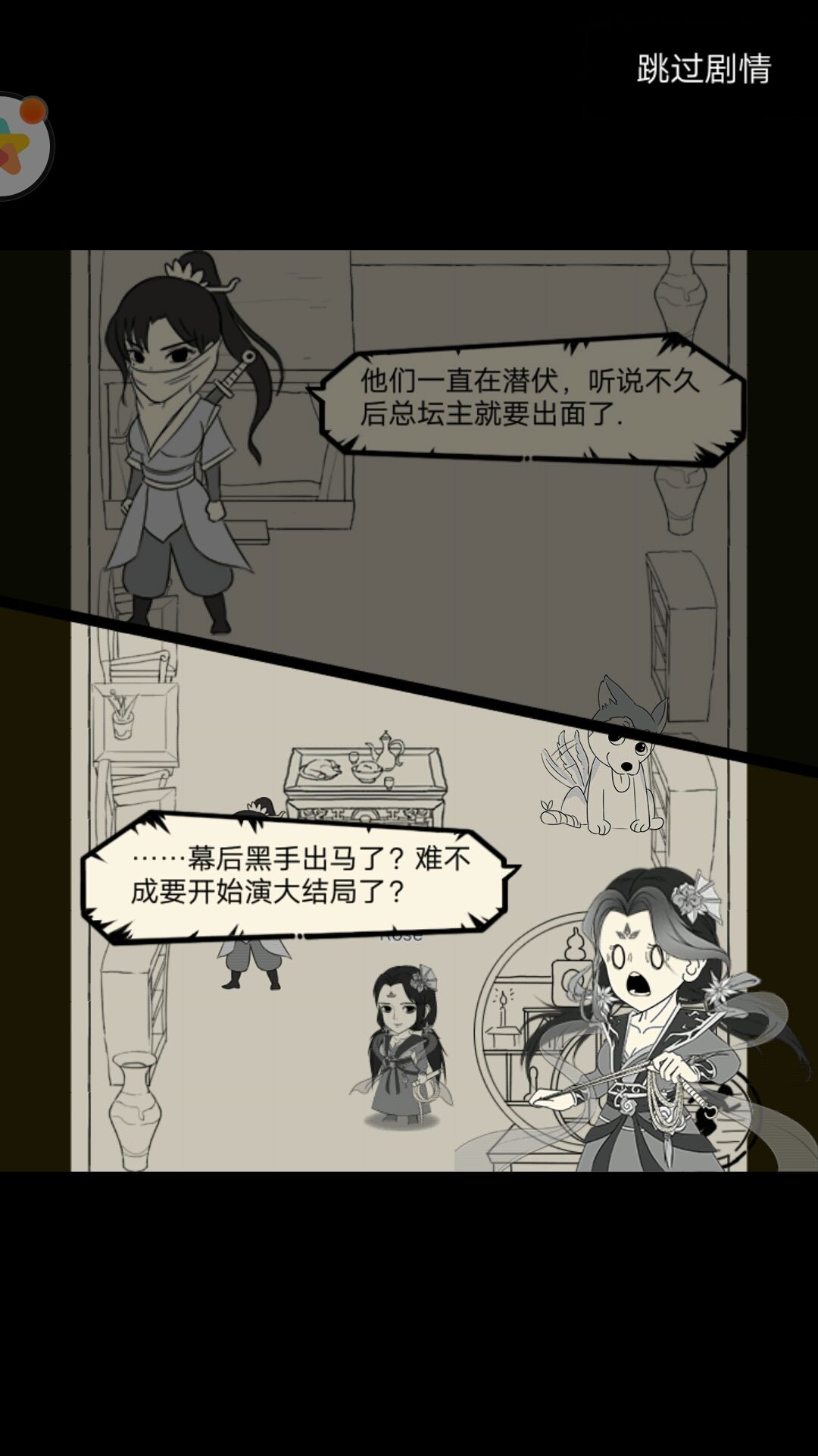 右:蒙面少女说青龙坛关乎整个武林的秘密。