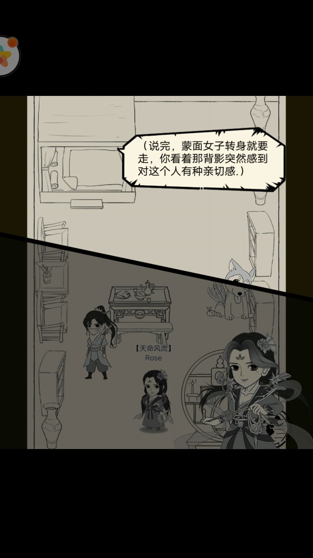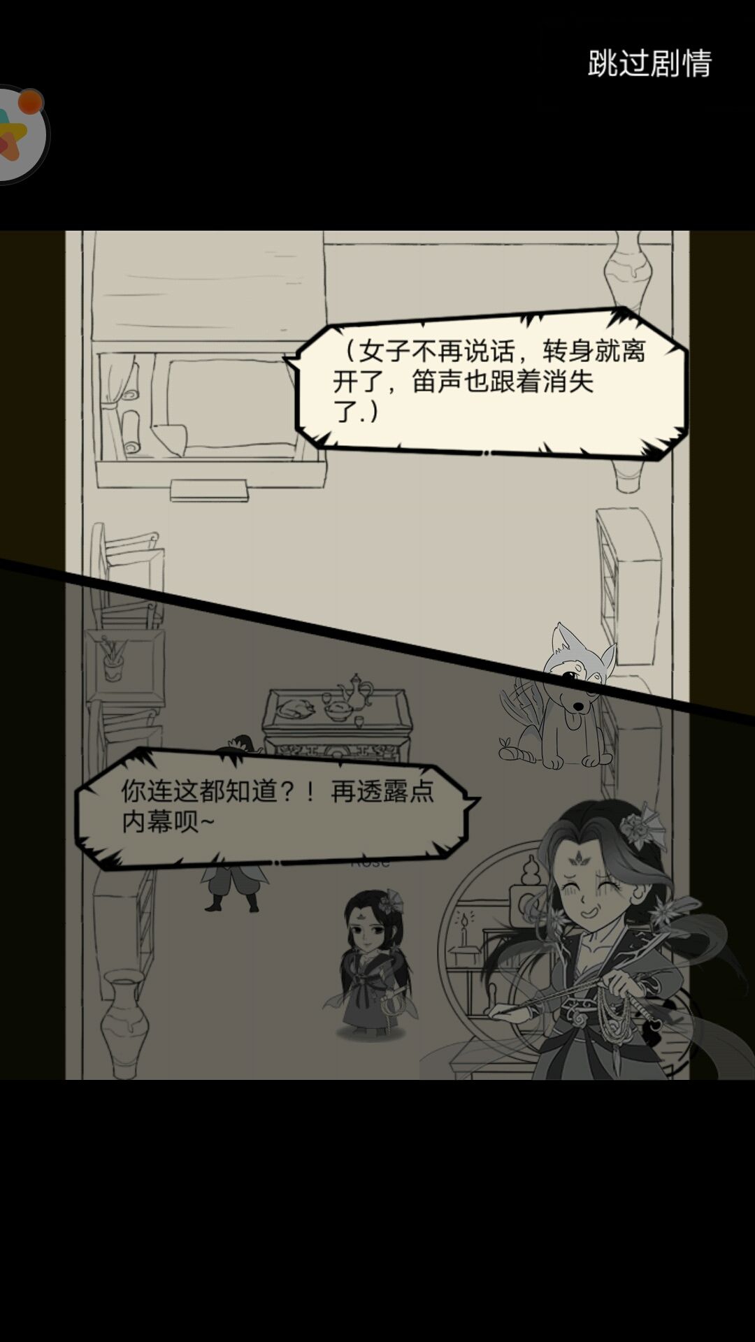 主角欲追问,突然笛声响起,蒙面少女便要离开