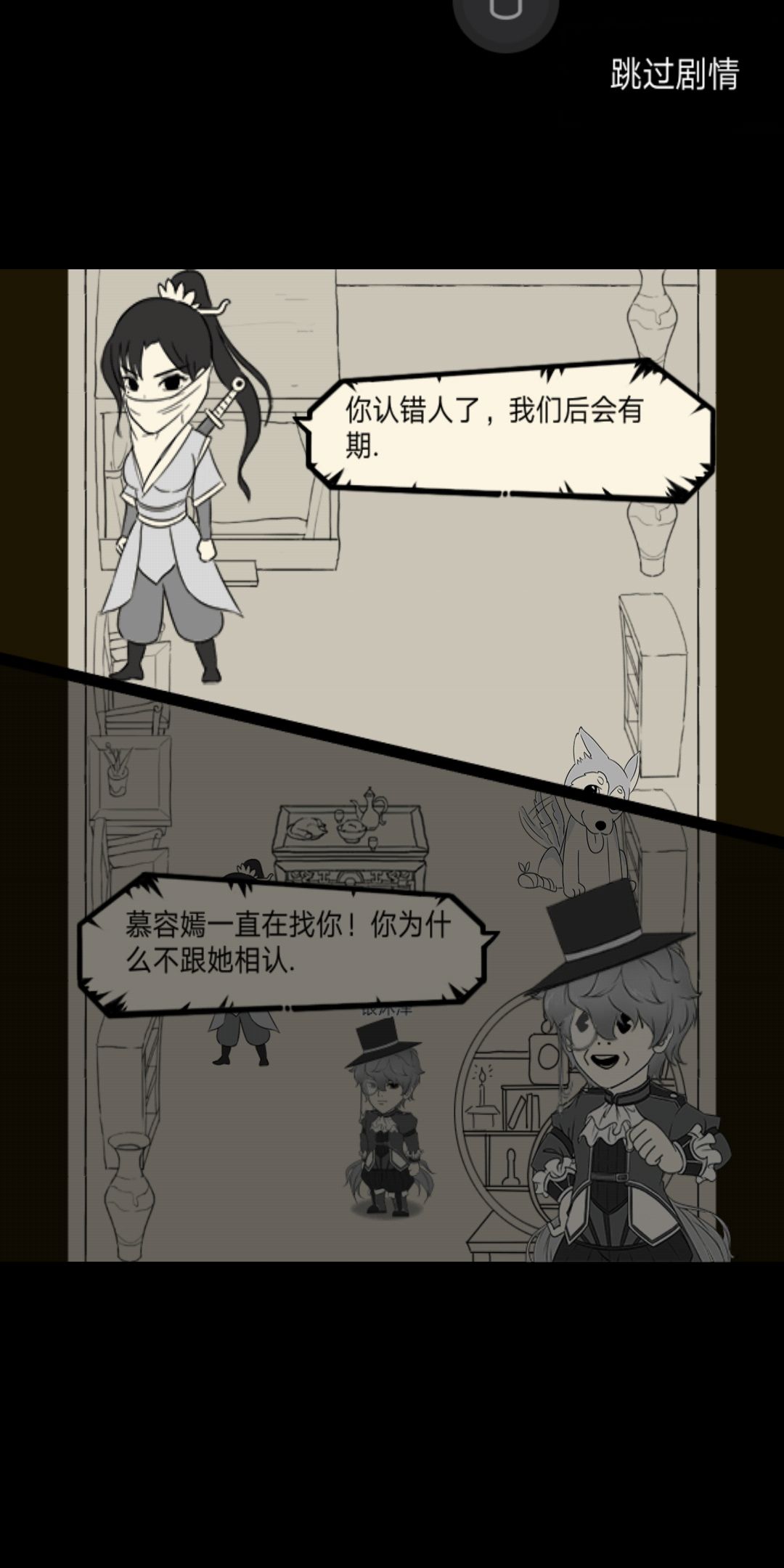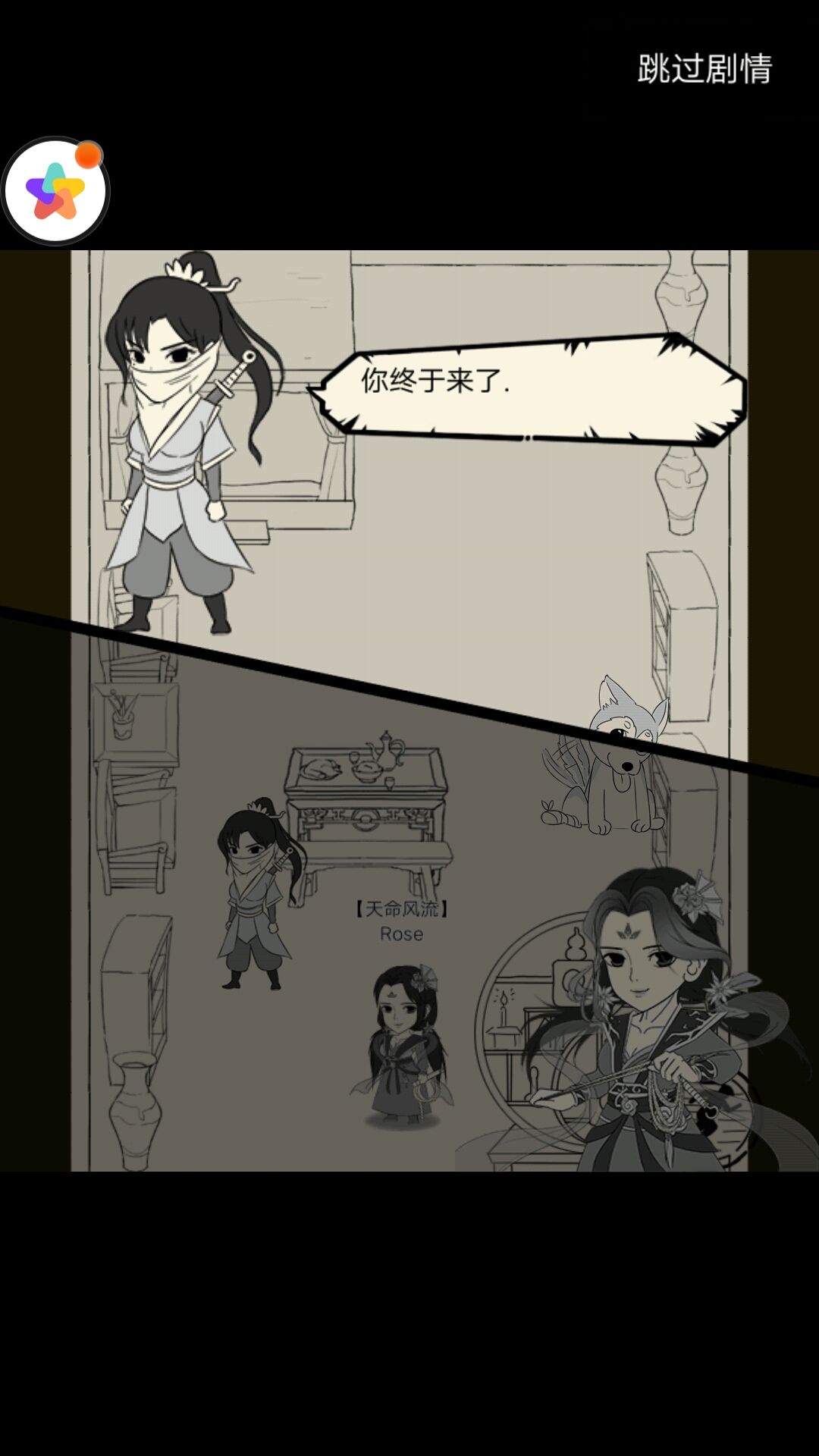 左:蒙面少女刚欲说话就中了(可能是青龙坛)的暗箭,不过问题不大,没有领便当。