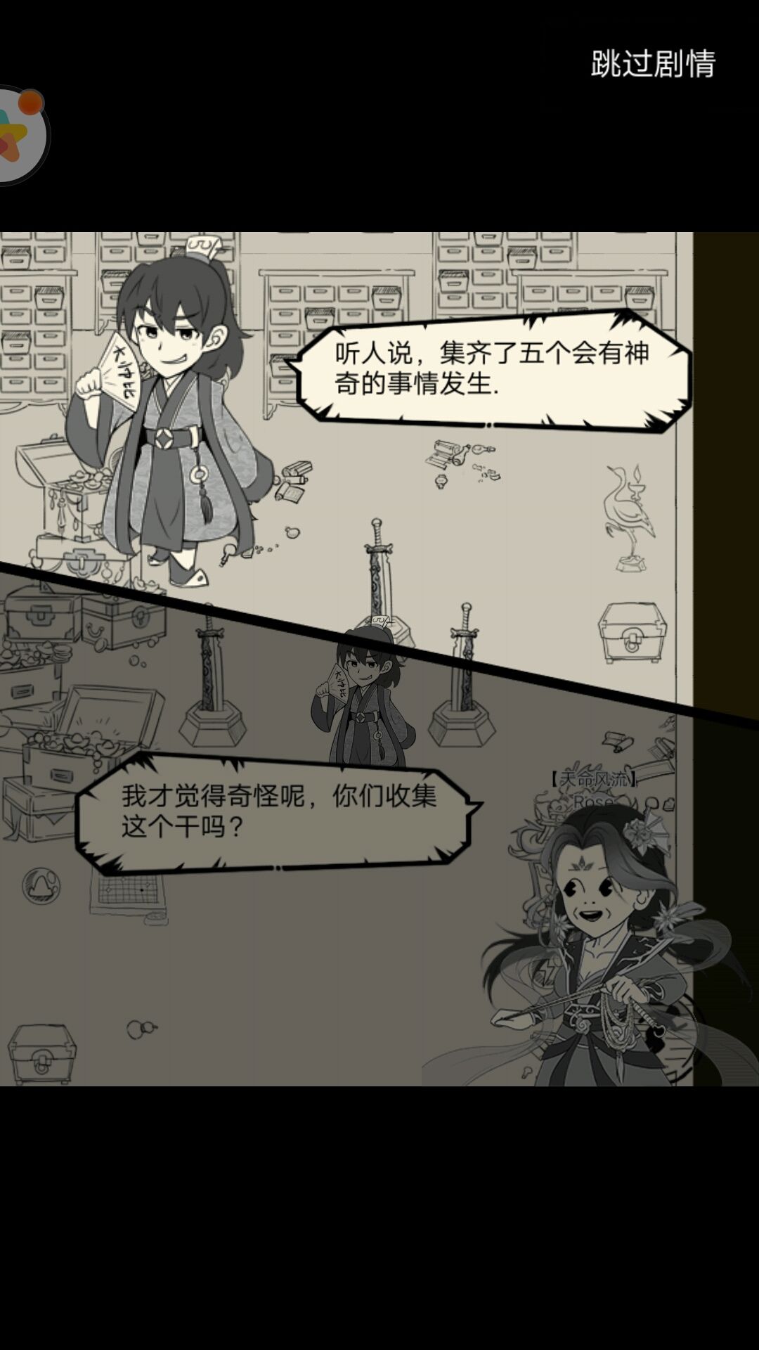 一番震惊后,从小陈王口中知晓陈王去了唐门(可能要出新门派咯),然后小陈王让我们选宝物,我们对小狗的宝盒十分好奇,因为小陈王说那抵得上半座王府,我们一看,没想到是……