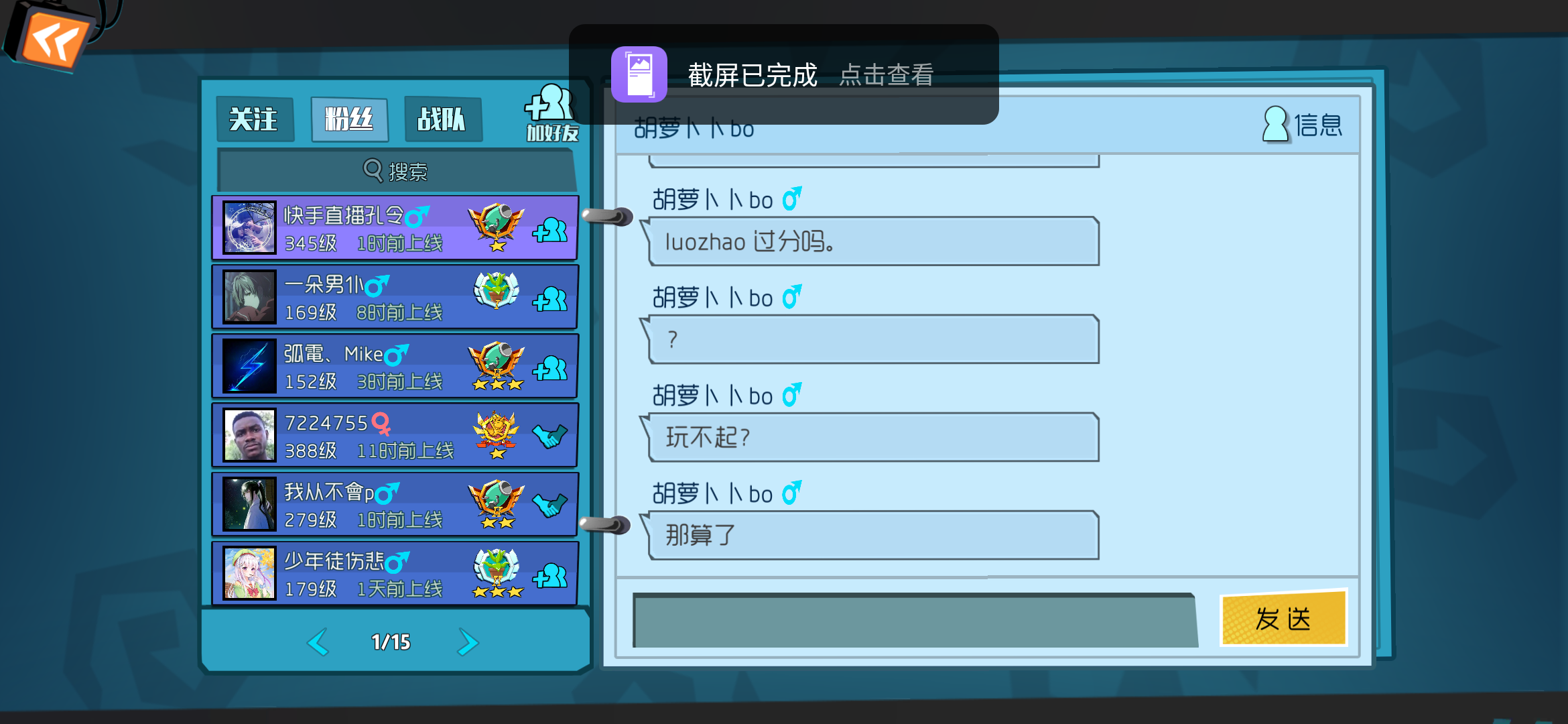 这都是些什么人呀?单挑输了给我还舔着个B脸提这么龌龊的要求,不鸟他还说我玩不起。真的是。