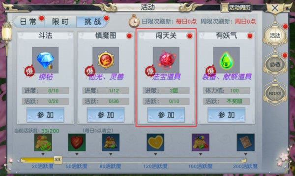 46级以上的玩家可以在主界面的活动→挑战→闯天关中进入。