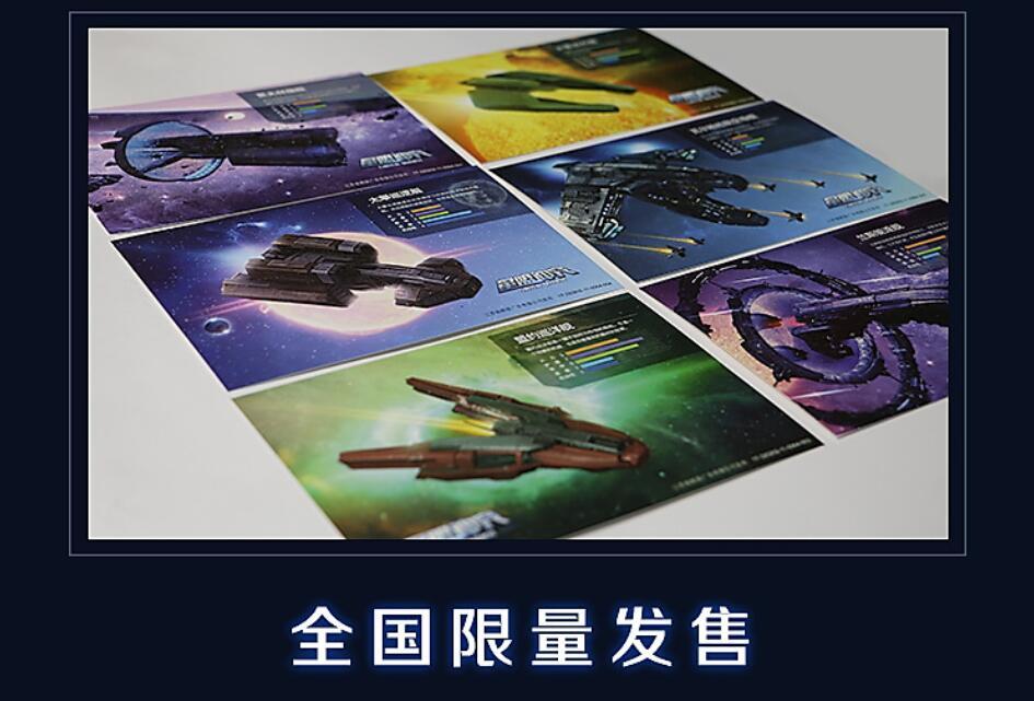 不仅如此,《星盟冲突》限量版明信片挑选了游戏中具有代表性的6款战舰:瓦尔拉哈航空母舰、义警战列舰、太攀巡逻艇、盟约巡洋舰、贾夫林旗舰、兰斯驱逐舰,每张明信片都标明了战舰的基本属性,并利用七彩UV工艺突出战舰的科技感。
