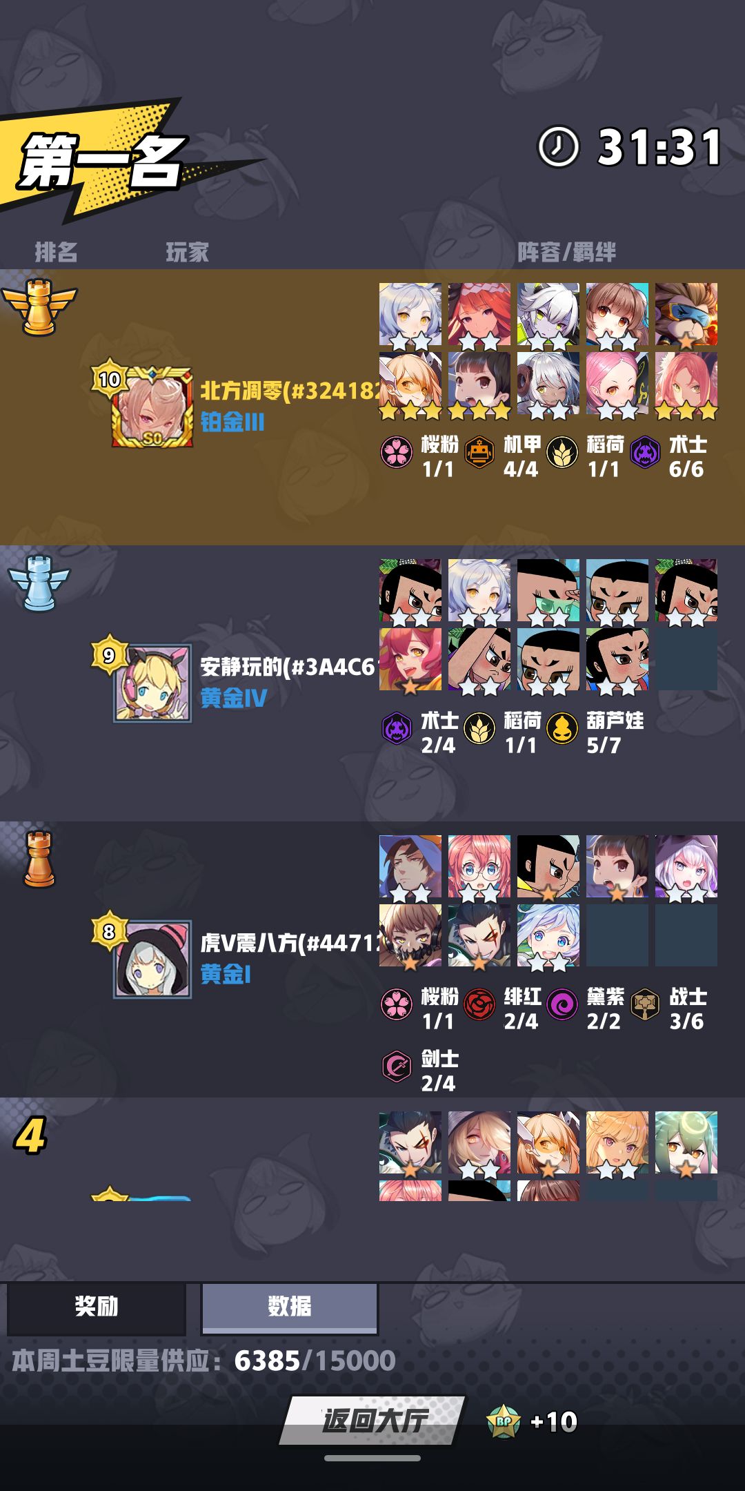 如题本局抽了五个哪吒四个诸葛阵容四机器六术士公主圈圈前期输出靠杂耍凭着吸血坚强苟活后期两星诸葛凭着四机器4.5秒一个吹风一个吹风4秒等到三星风信6秒一转三星诸葛3秒一吹一吹5秒不好意思秒不掉我这两个就打你全场肉装全给风信回蓝全给诸葛三星诸葛无限吹风这个阵容只要前期苟住,有圈圈可以多要打工仔,经济损失不大我估摸一下可能只有天胡法师能打我,可惜没有风信可换有位移的英雄或者高爆发的