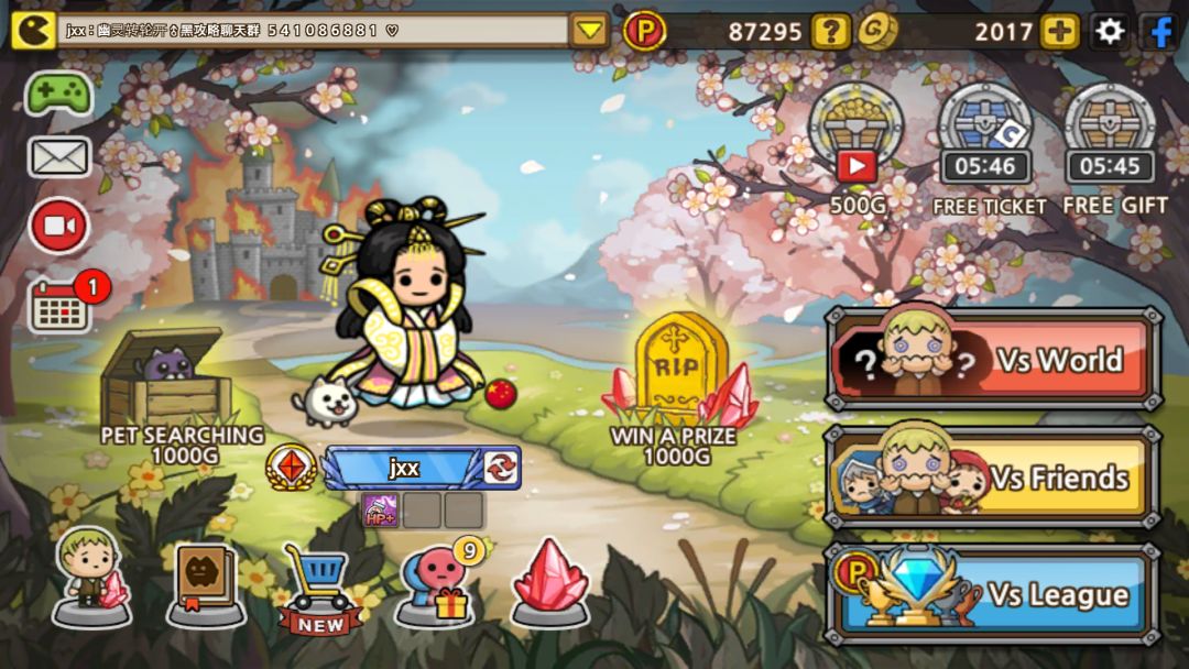 玩法分为世界对战(Vs World)、好友对战(Vs Friends)、冠军联赛(Vs League)三种