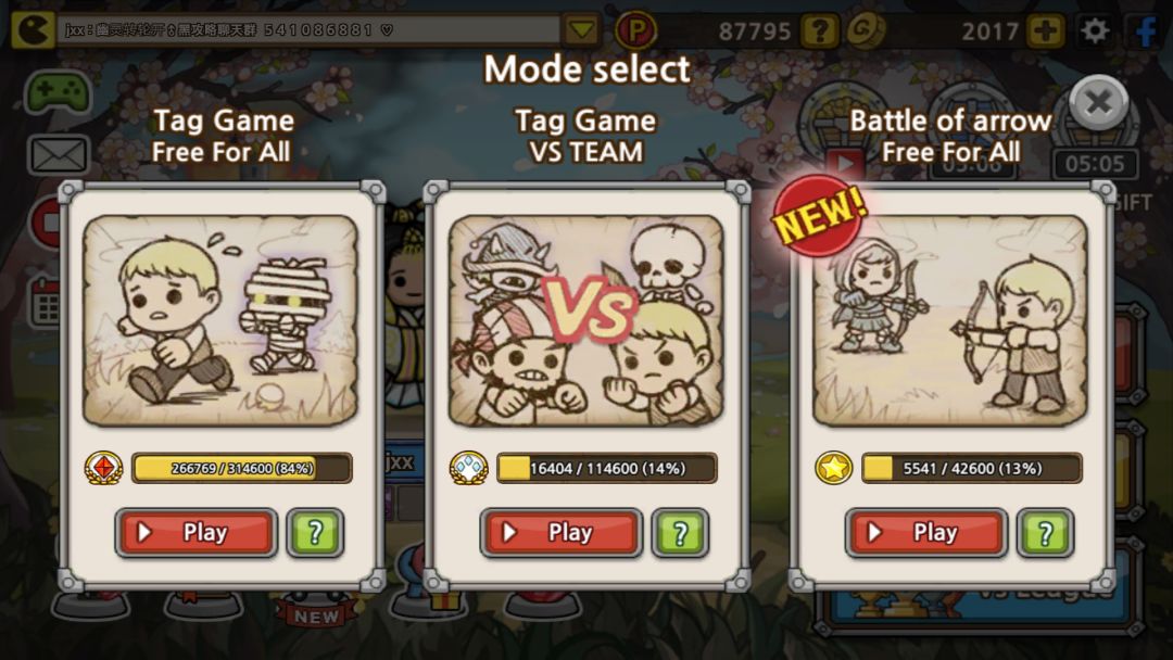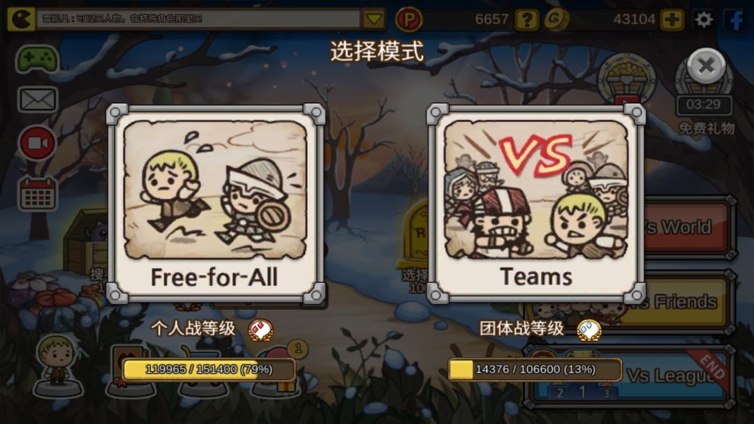 模式分为自由战和团体战(新增个人战弓箭模式)