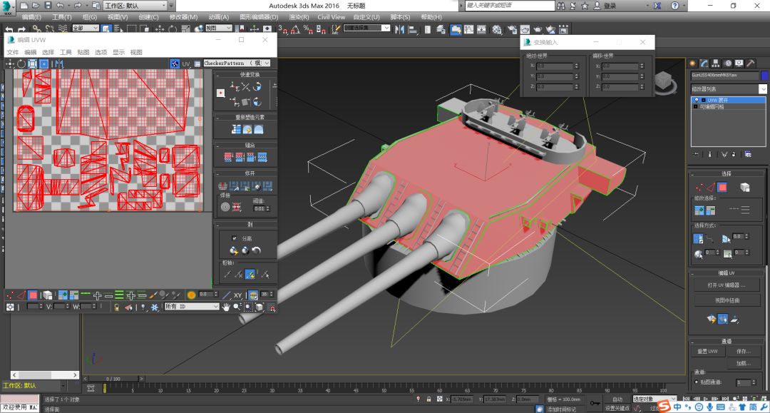 同时对整个火炮进行了UV分展,以确保贴图可以达到最佳效果。