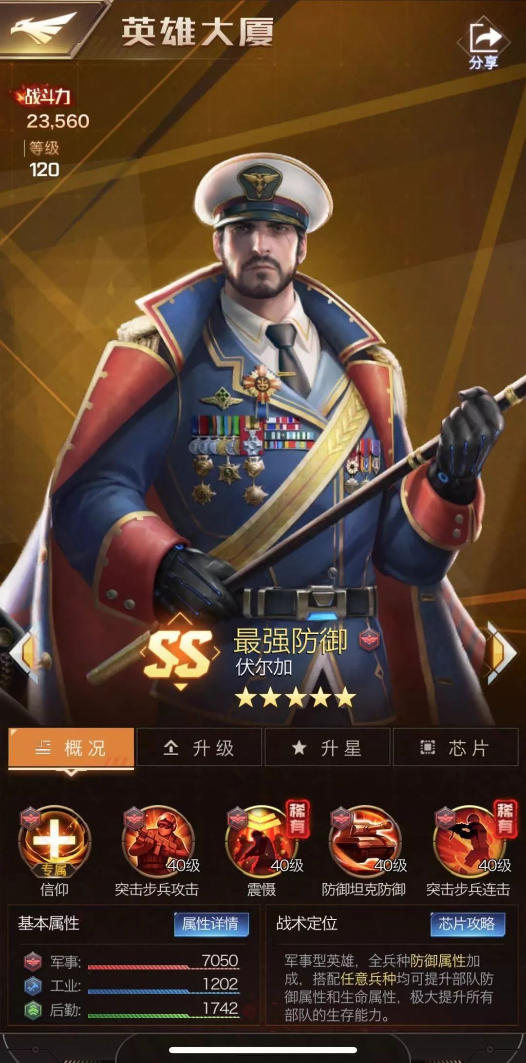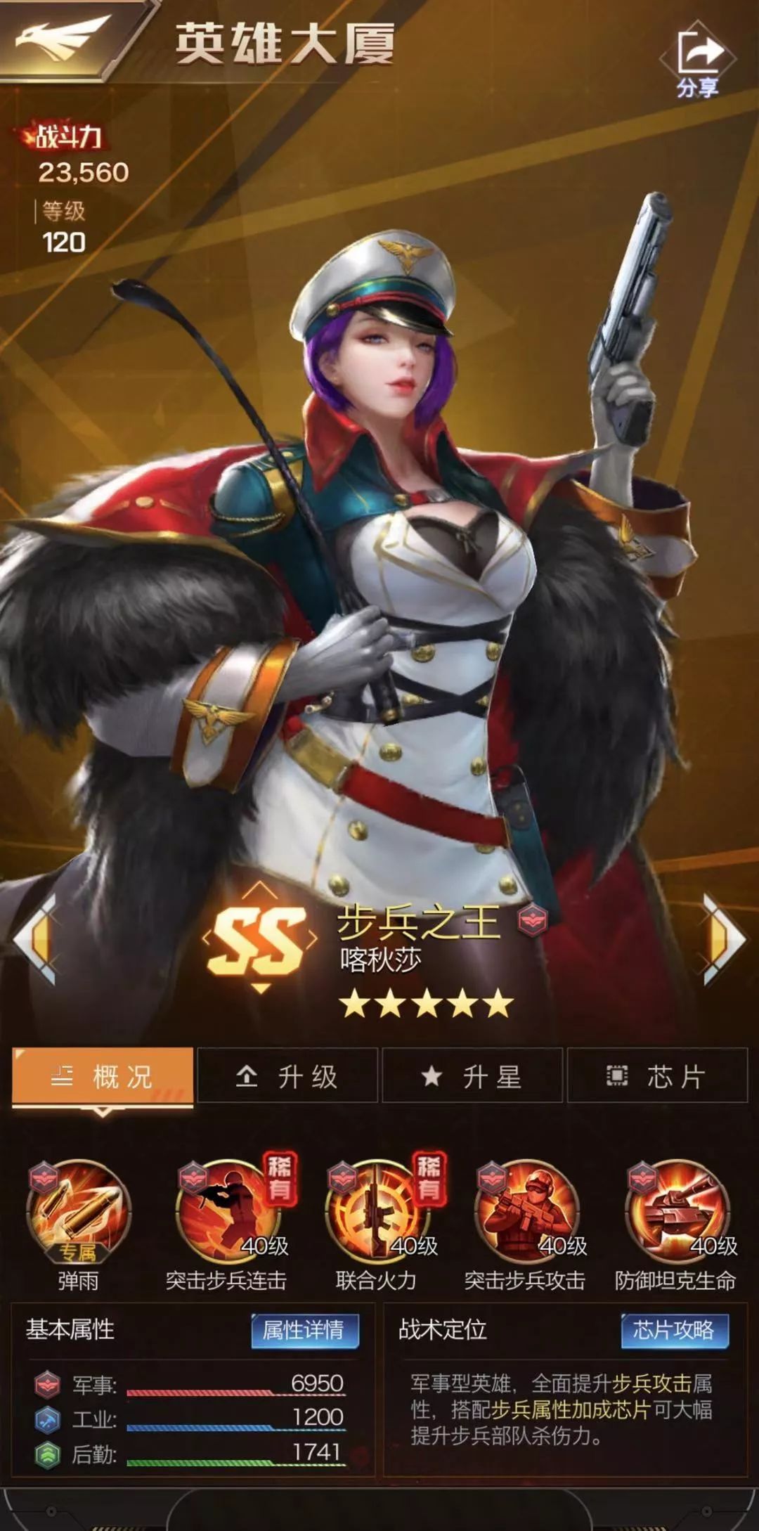 出征我搭配的兵种是十级防坦,十级步兵,八级步兵。带这两个芯片是为了增加防御坦克的血量跟防御坦克的防御,也就是增加防坦的抵抗保护后排的能力。