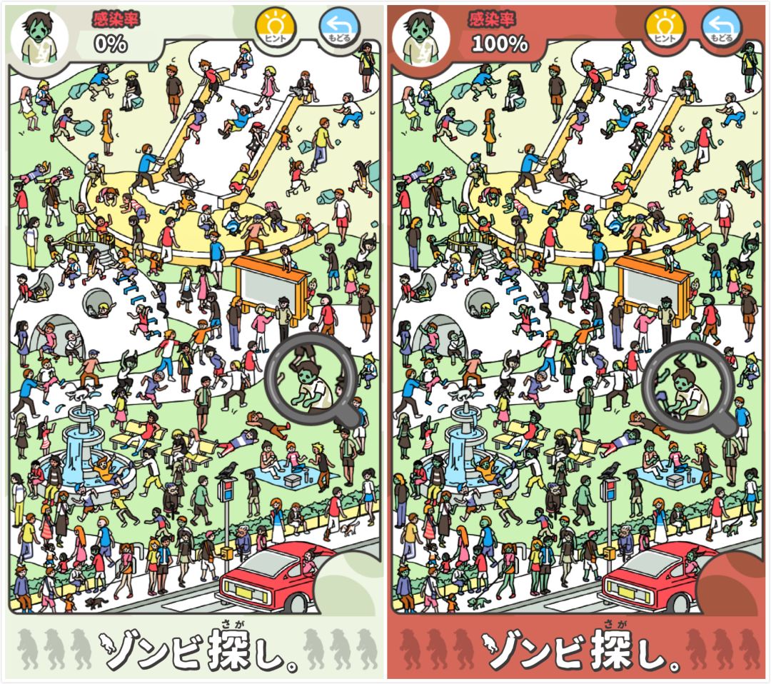 《寻找僵尸》是由知名休闲游戏厂商G.Gear带来的一款新作,如果你玩过《隐藏之人》,那应该也能轻松上手,不过这一次隐藏的不是人类,而是僵尸。你要前往水族馆、学校、医院、公园等数十个场所,在人山人海中抓出僵尸病毒。病毒会随着时间的推移感染越来也多的人,一旦达到了100%,游戏只能重新开始,你能花多久拯救人类?擦亮眼睛,来试试就知道了!