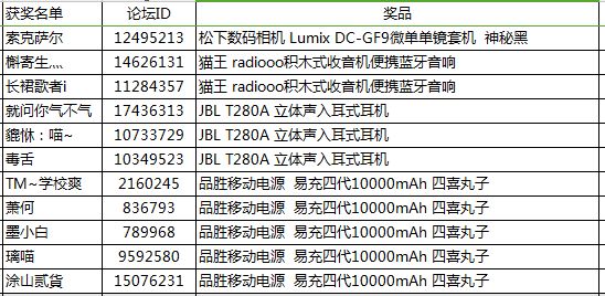 恭喜以上玩家获得活动奖品,请于2018年1月17日23:59前主动联系活动人员QQ:2692317328,提供您的论坛身份截图,收奖姓名电话地址,超过时间未提供收奖信息将视为主动放弃领奖,后续不会补发奖品,请熟知~!!!!