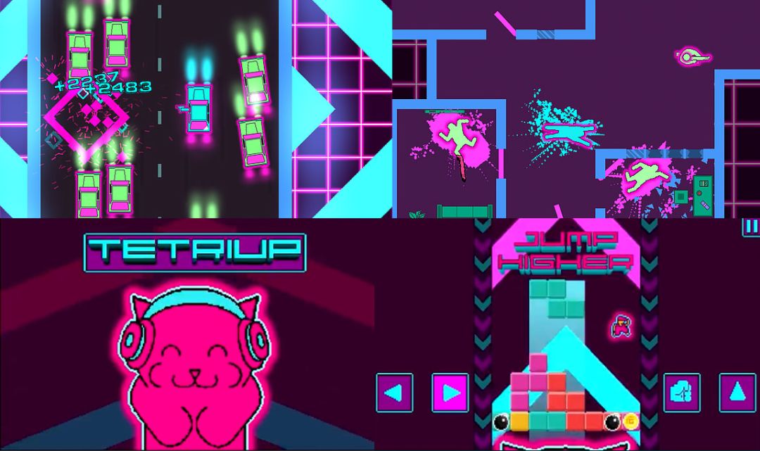 《色彩大冒险》从游戏截图来看,色彩斑斓,眼花缭乱地视觉感受,仔细一看原来是游戏关卡,以白色小方块为主角,一蹦一蹦地上下跳跃移动,能感觉到是偏音乐节奏类的街机游戏,游戏美术表现效果出彩又酷炫,给玩家塑造的目的也能明确,就是把白色小方块安全无恙地送到彩虹旋涡中。