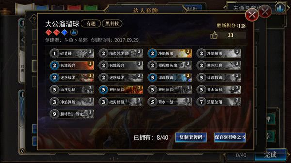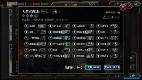 如果要使用这副套牌,请先将套牌码复制到剪贴板,然后在“达人套牌”里点击“使用套牌码”进行粘贴。