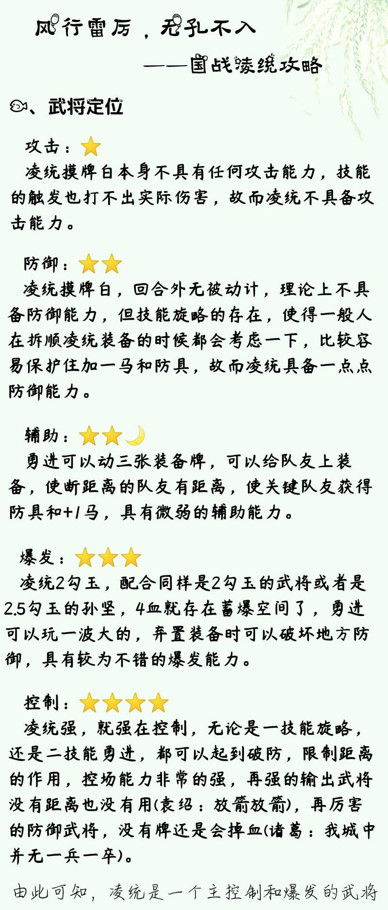 【咸话攻略】史上最详细的国战凌统攻略来了