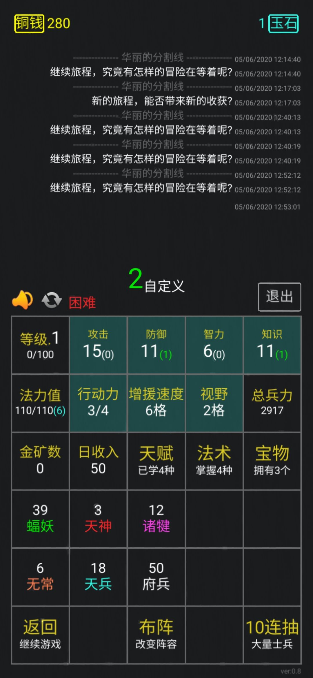 2. 天赋点是征兵>攻击成长>钱>经验加成>探索>游泳>道术>防御/智慧成长>勇气>骑马>箭术>其他的