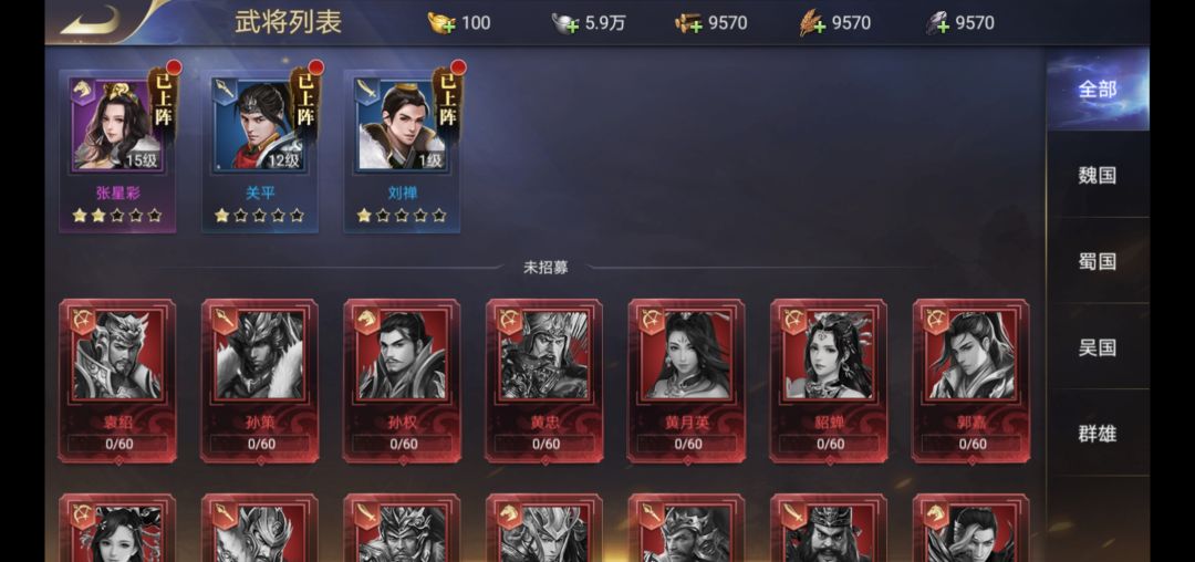 首先这游戏主要是选择阵容来攻打其他国家,主要就是攻城战,前期系统会让你选择一个阵营,分别是蜀魏吴,而且很多都是按照三国的故事线来玩的,这也是我入坑的一大原因,三国迷暴露了哈哈哈哈哈哈哈,前期给我们的英雄是关平而且第一天送的也是刘禅,
