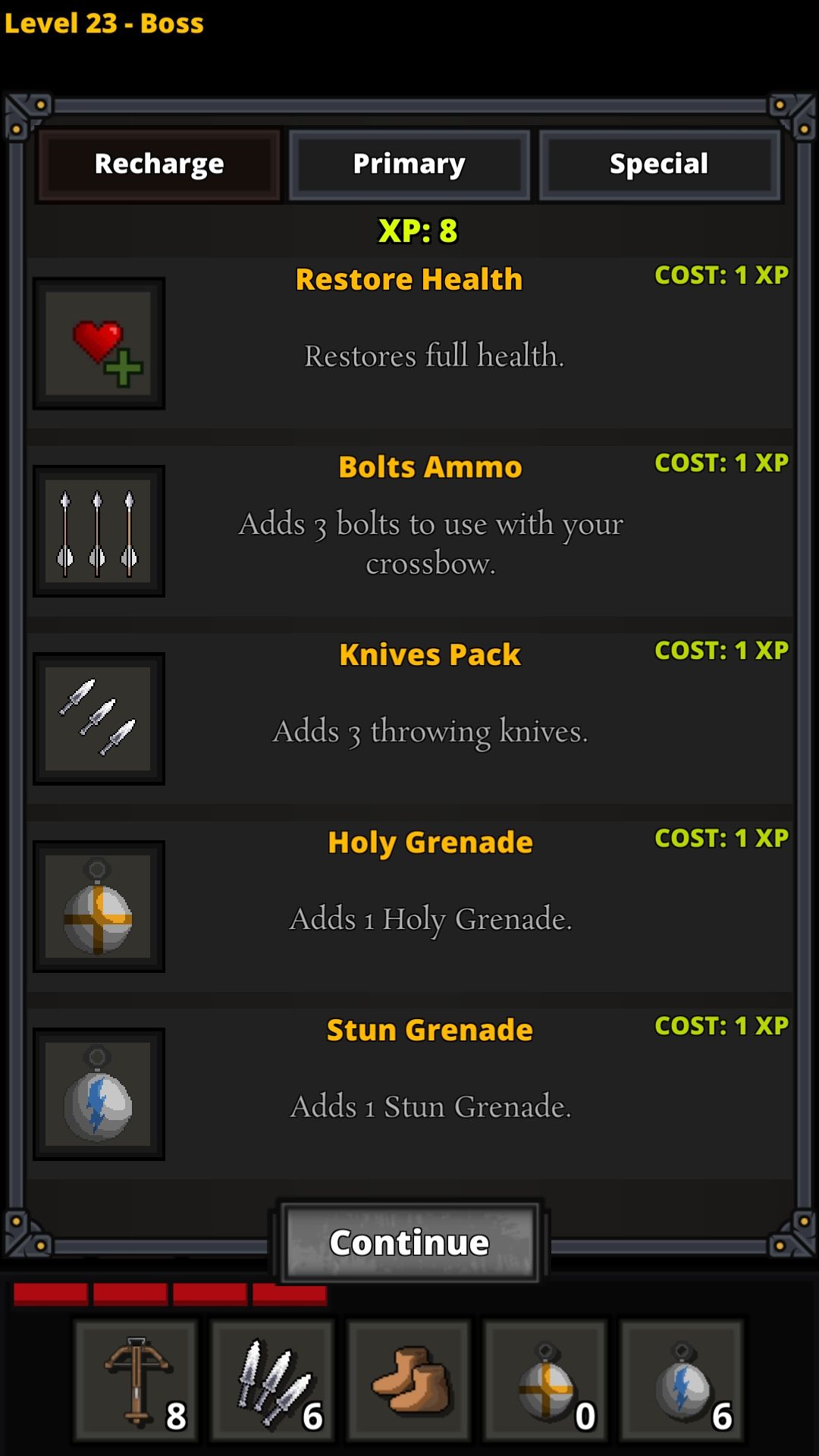 9:剑:一次攻击杀死两个敌人时恢复一点血量(投掷武器除外)