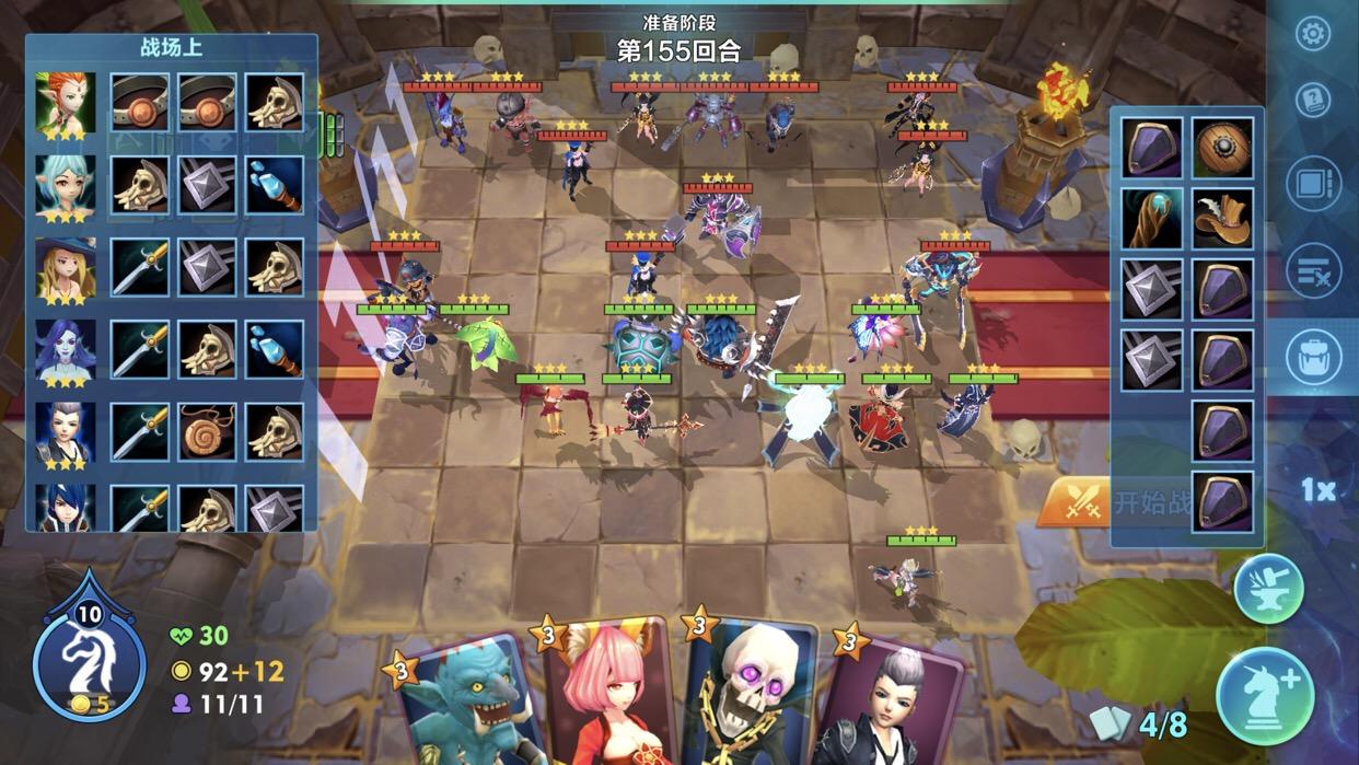 新人菜鸟,分享一下我的打法,前面运气好看广告给了女王,基本女王输出最高,羁绊6施法者配合3狂暴输出很客观,法师加女王全站左下角2列,前排肉,法师外围3精灵带闪避挡住对面刺客突脸,肉和精灵根据对面阵容准备物抗和魔抗两套装备,还有一点就是用剑客控住对面前排输出,如风男。