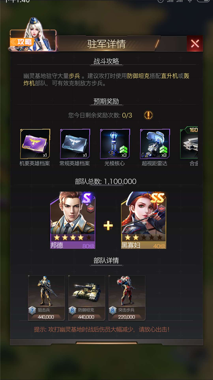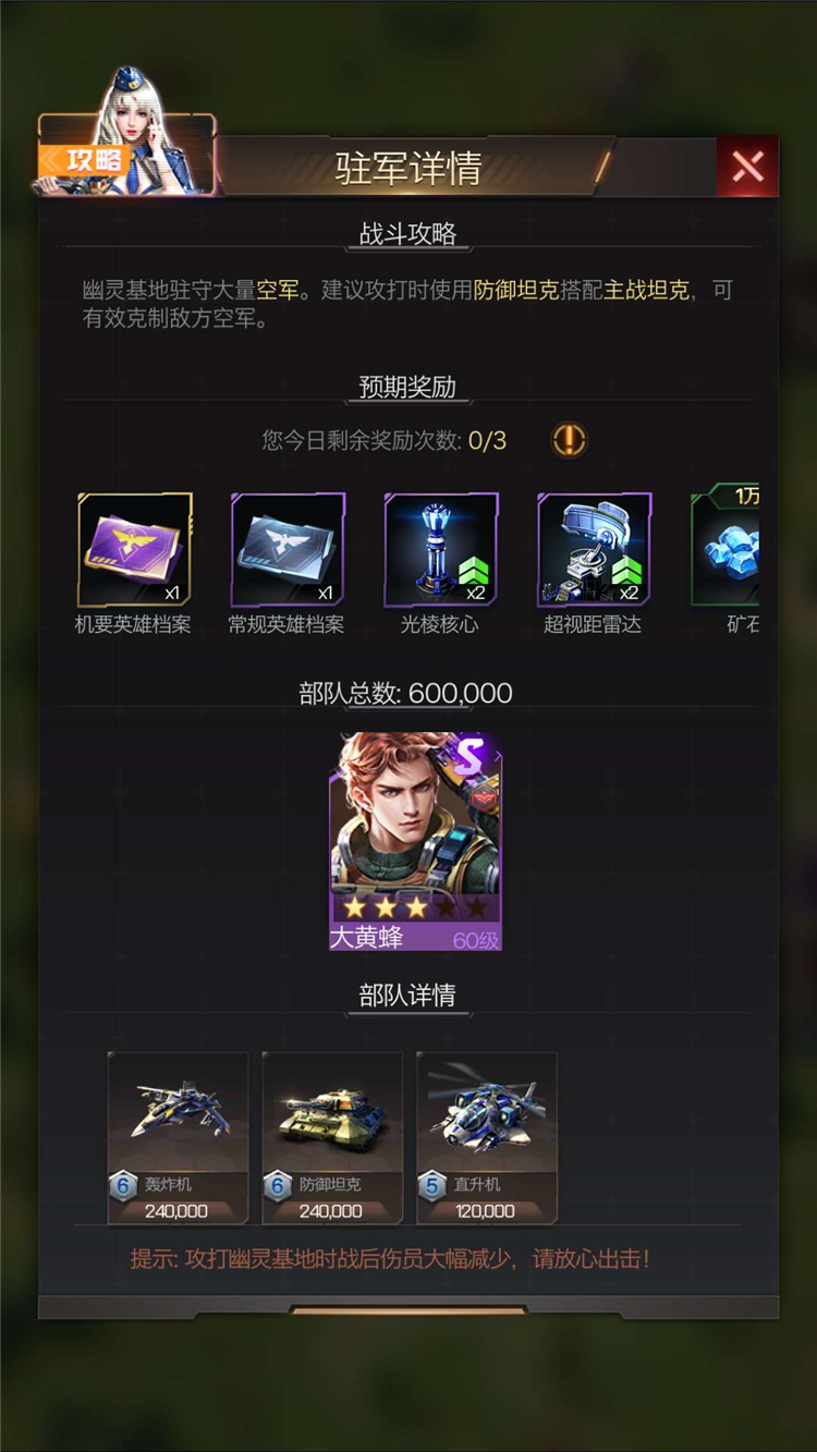 对于发展初期,兵力没有成型的指挥官来说,超过5级的【幽灵基地】最好还是和盟友集结攻打,获取奖励的同时,还可以和盟友培养默契,以便将来共同迎战更强大的对手。