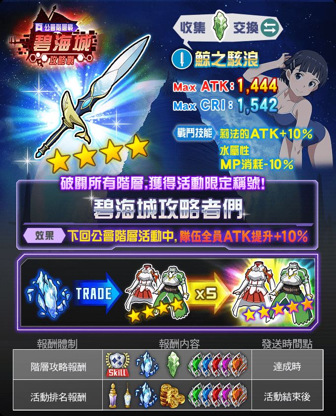 ※ 收集「證明」及「活動排名」將會於活動結束後重置,並不會沿用至下次公會階層活動。