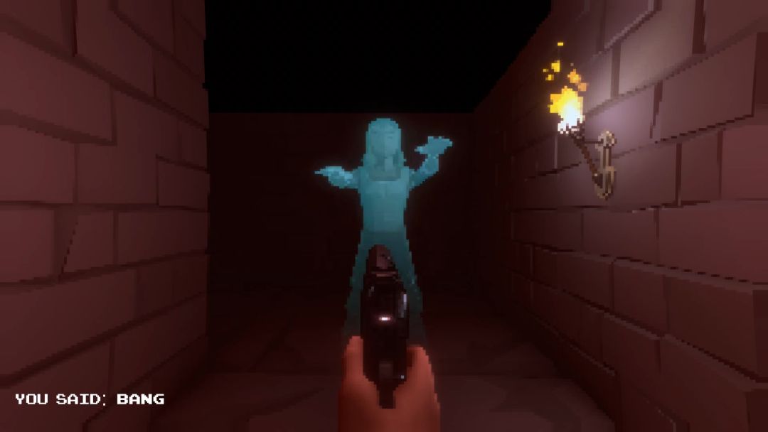 像素风第一人称声控恐怖地牢探险《Draumskrok》。