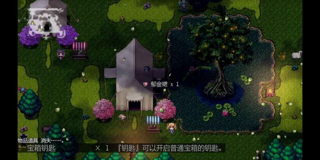 在南边的帐篷右侧发现宝箱,使用宝箱钥匙得到“郁金裙”(女性装备)。