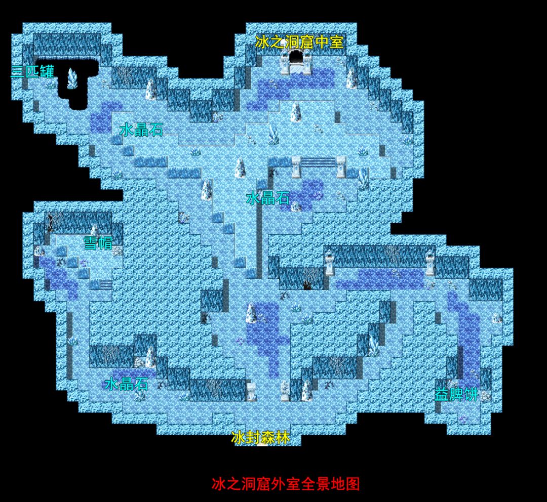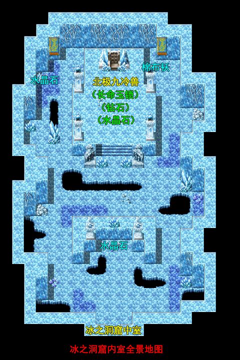 往左,是一条死路,可得到“水晶石”。镶嵌道具,提升回避率。宝箱可开得“雪帽”,男性角色可装备。往右可宝箱得到“益脾饼”(可永久提升4点物理防御)