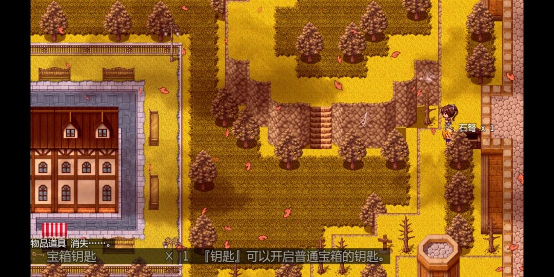 将装备更新换代之后,此时可以向下走了,离开牧区,向右,树上发现“宝箱钥匙”x1,推门进入“鹰坊的石窟”。