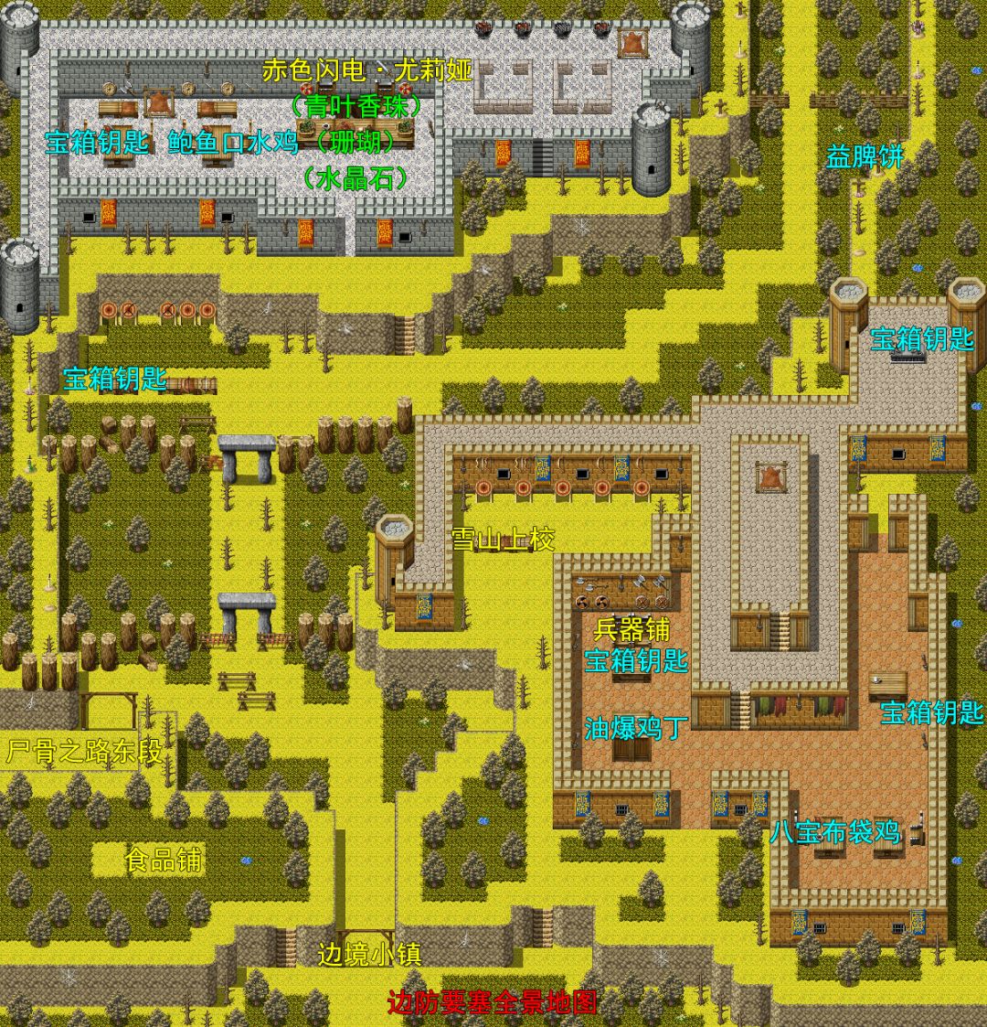 要塞内发现“油爆鸡丁”x1,“宝箱钥匙”x3,“布袋八宝鸡”x1,在红帽子美女那可以购买现阶段最强武器“石弩”“玉骨鞭”。