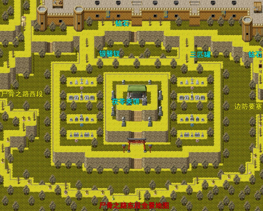 往左走在中间棺材得到“钻石”x1,往右走棺材中得到“钻石”x1,右上宝箱使用钥匙得到“长弓”(主角武器)。左下角,右下角棺材各得到“钻石”x1。往上得到“钻石”x1,“茯苓夹饼”(永久提升单人15点MP上限),往左上方房间走,得到“钻石”x2,“乳饼”x1。并收集齐5个药材果实。
