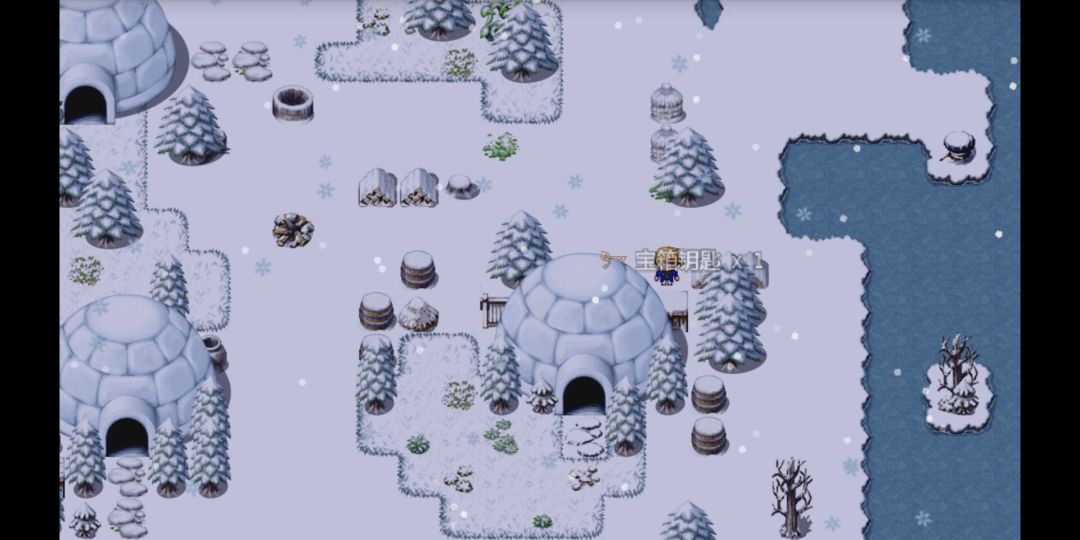 出仓库,左边有一个被雪覆盖的箱子,靠近得到“宝箱钥匙”x1。大喜,进屋使用钥匙打开宝箱,得到“短弓”。月泷烟可装备此种武器。攻击力小幅提升。在周围继续搜索,陆续共得到“宝箱钥匙”x4。