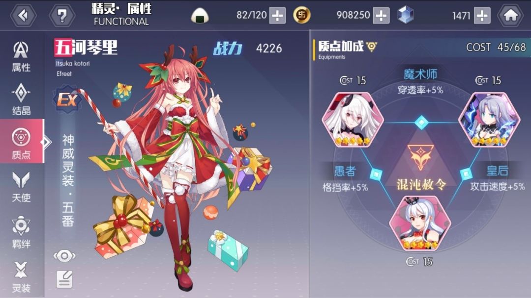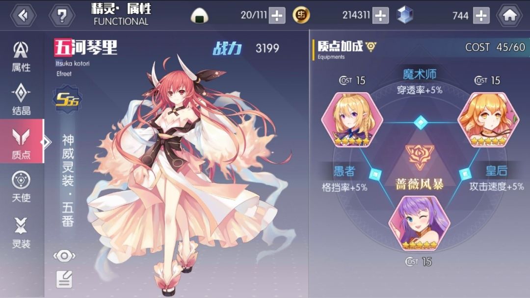 在此,我只建议琴里天使等级到五星的小伙伴使用这套(被动技能非常重要)。先看一下装备这套质点后的属性: