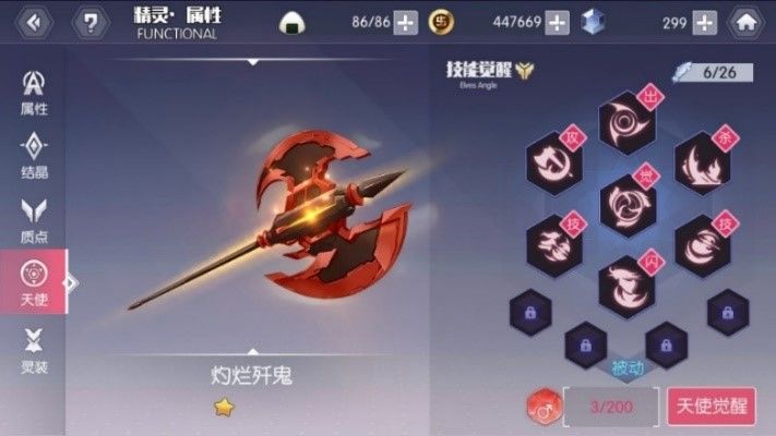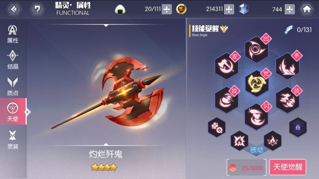 当我们觉醒天使后,可以装备被动技能。由于没有专属质点,战斗主要是靠战斧,炮形态启动需要时间,且持续时间不长,用不到的几率很高,所以在天使的加点方面是偏重于战斧形态,这样效果比较好。以下是我的一些推荐: