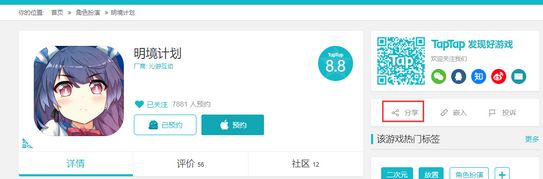 在游戏介绍页右上角点击打开分享界面,并选择“微信朋友圈”