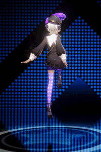 【哥特少女】定制时装装扮下的姻月,换下了平时的连体卫衣,穿上了黑色萝莉裙和贝雷帽,紫色长筒袜点缀着一排漆黑的蝴蝶结,圆圆的黑框眼镜下,一双大眼睛依然策划着她心中的理想爱情。常伴身边的毛线圈,变成了格子纹的抱枕,装饰着紫色与蓝色的艳丽玫瑰。绳线前端的♂标志,也被金色十字架替代,不过乱点鸳鸯的能力丝毫未减喔!